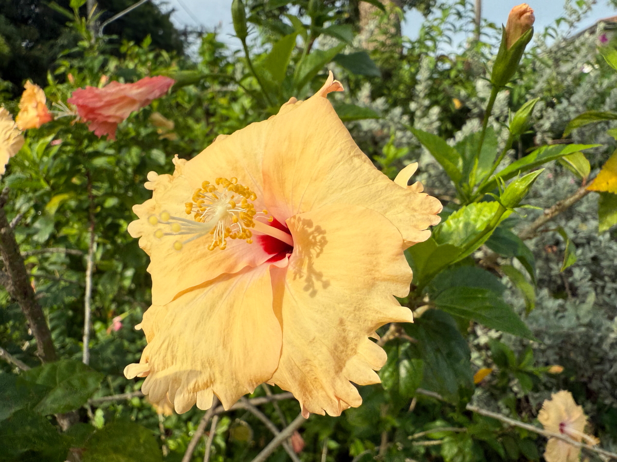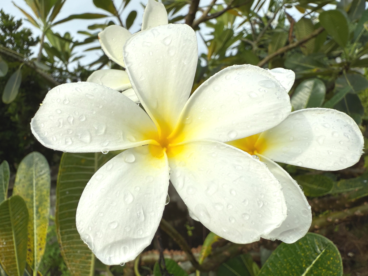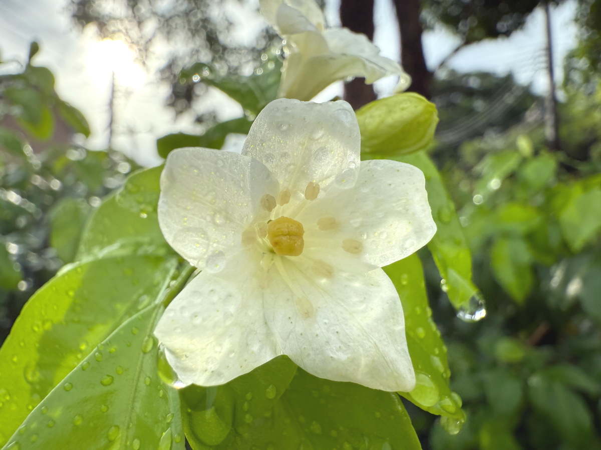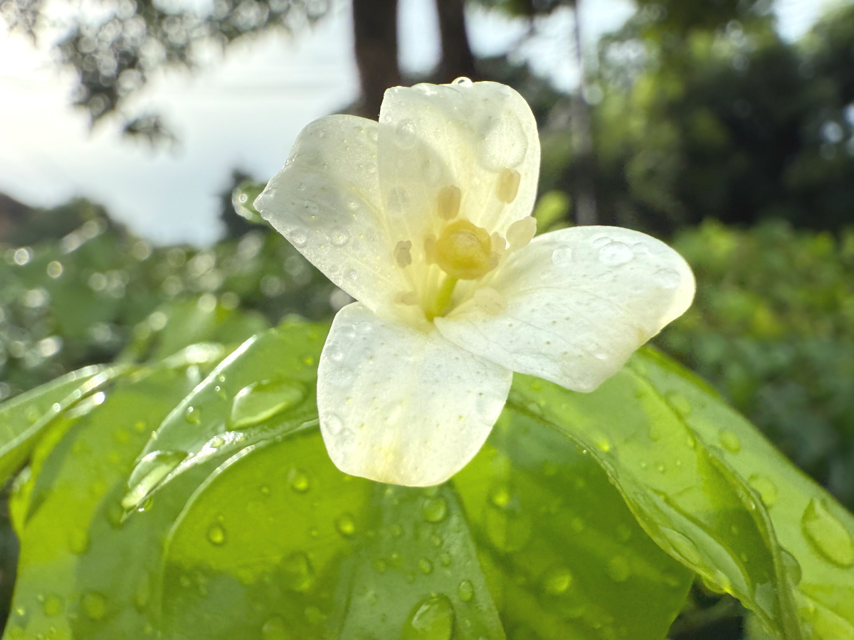 4日、朝から晴天で雨上がりのお花を陽射しが包みます