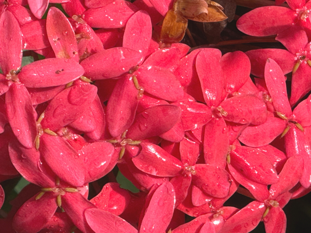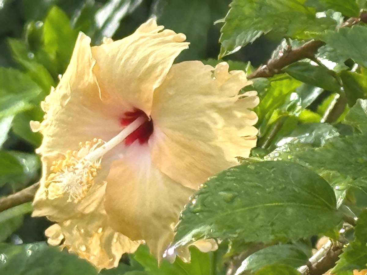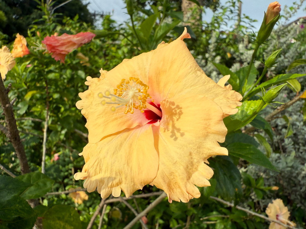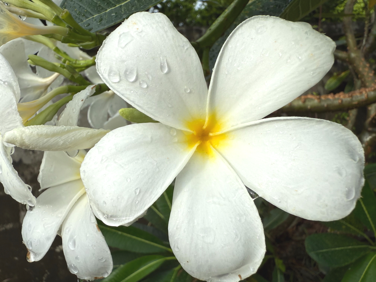 4日、朝から晴天で雨上がりのお花を陽射しが包みます