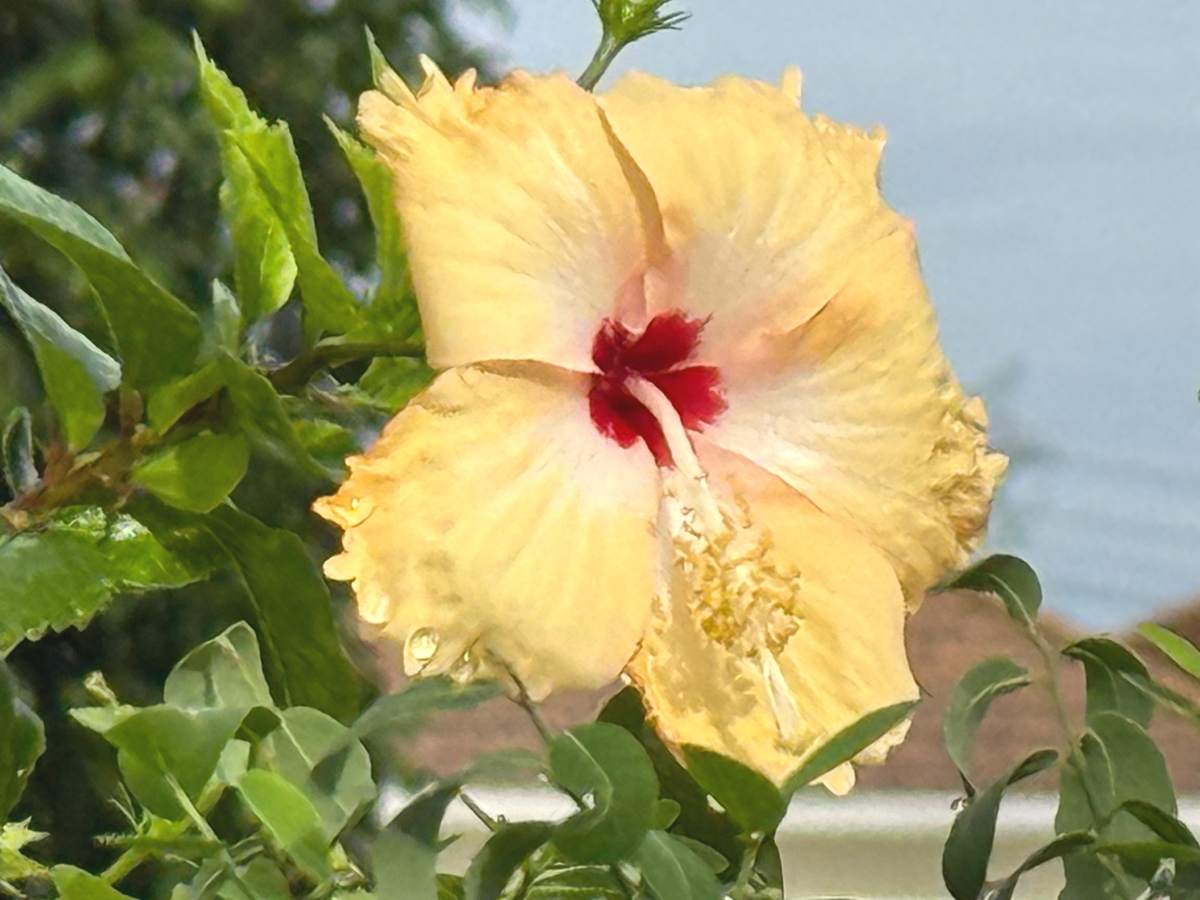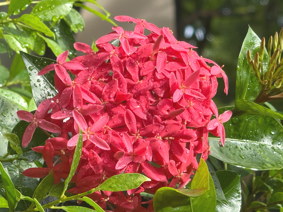 3日、雨上がりの朝、生垣のお花が今日もにっこり