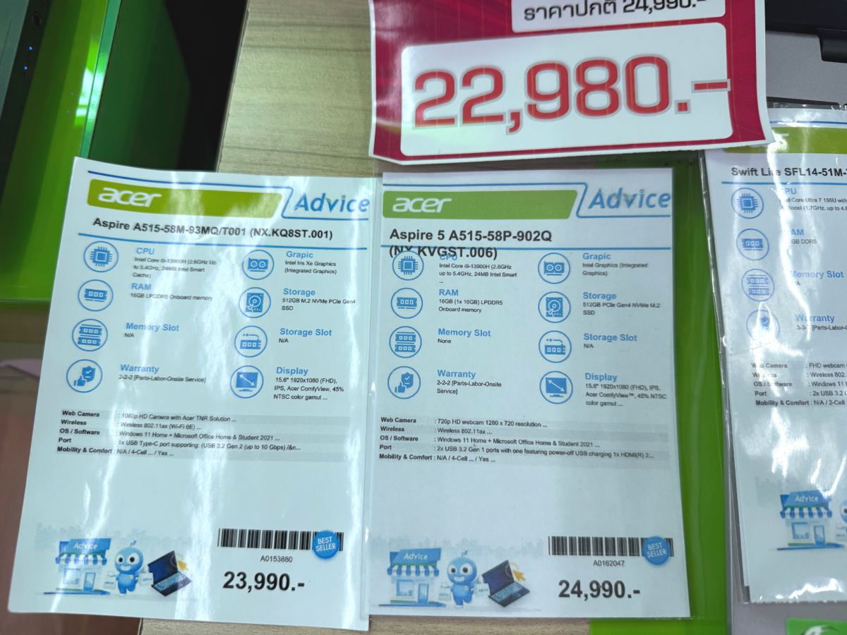 ITコーナーのPC,i7クラスのPCの価格感, 23,990 → 21,000バーツに値引きで約84,000円