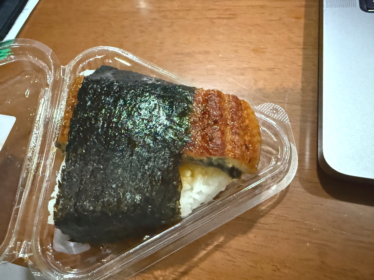 タイのウナギおにぎり、具材は海苔でご飯の外に巻きます