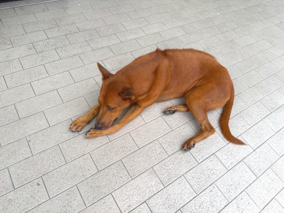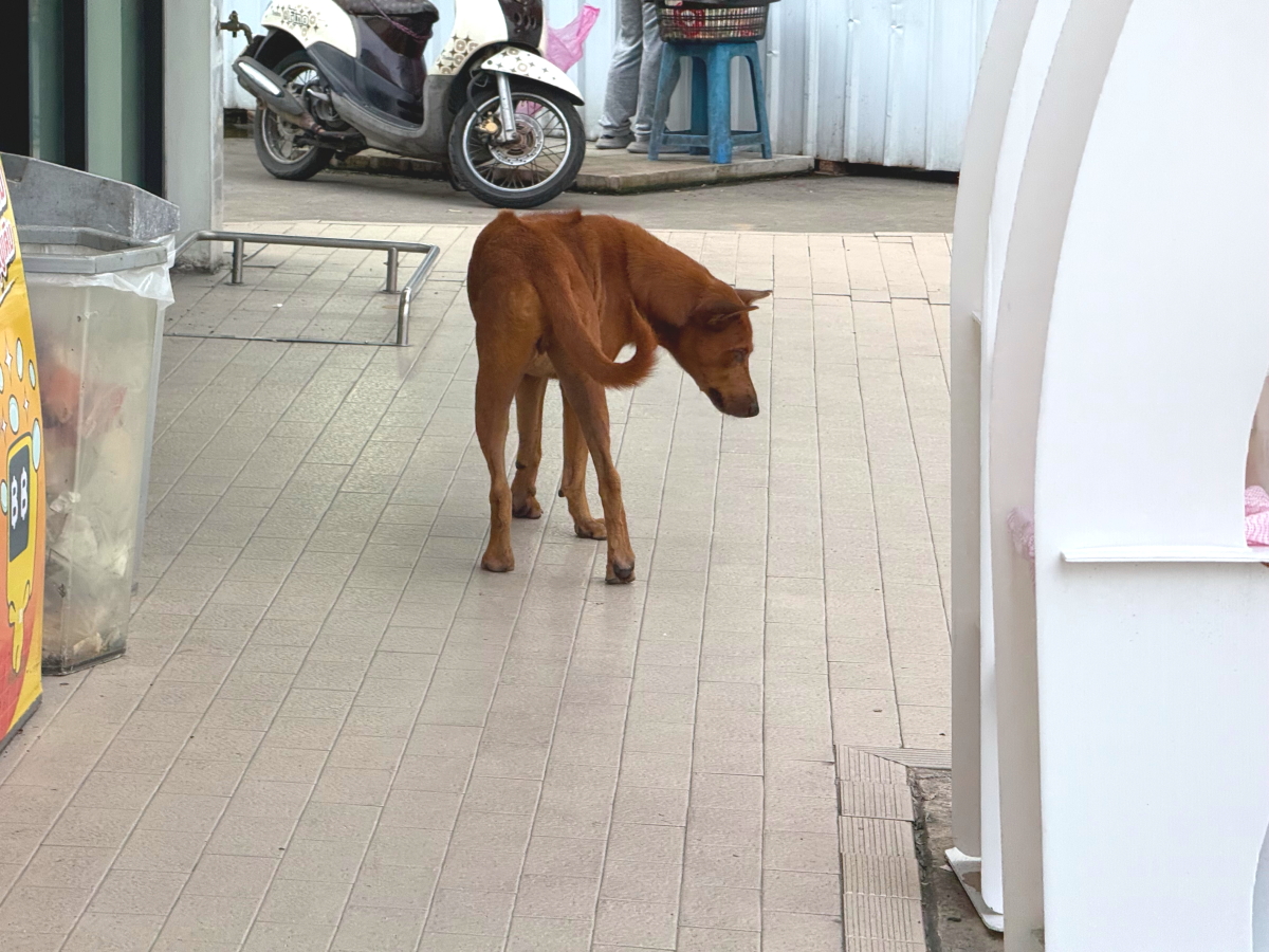コンビニ入り口にはおこぼれ期待の野良犬がウロウロ
