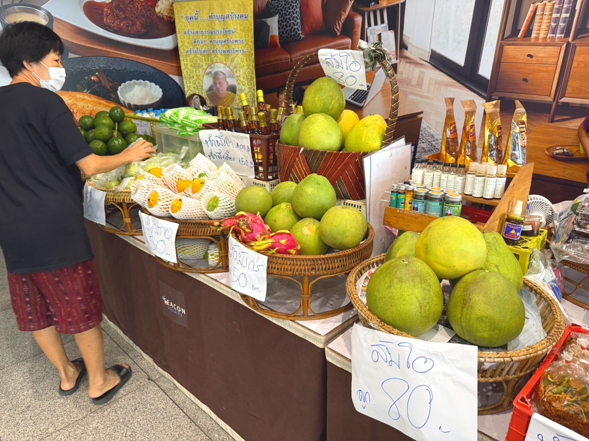いつものショッピングモール、入り口通路には産地直売の果物売り場