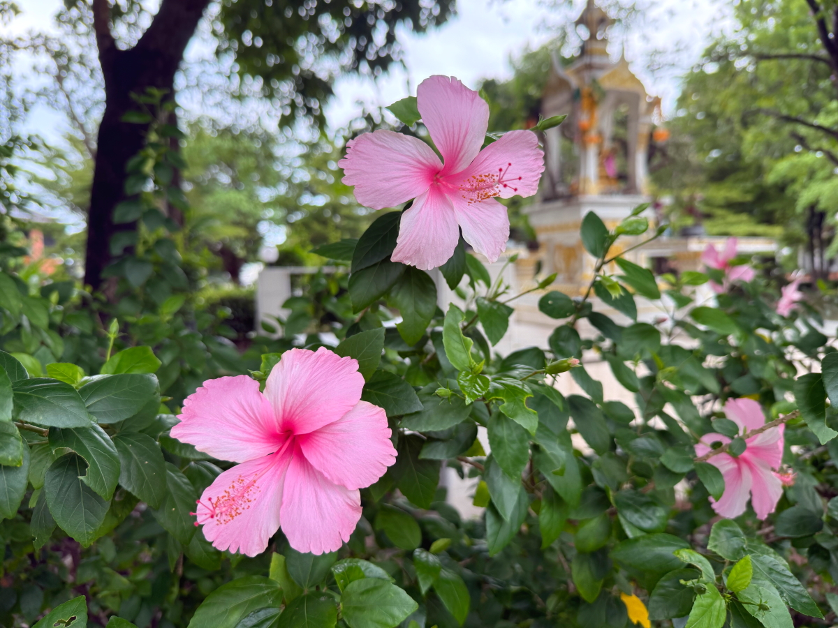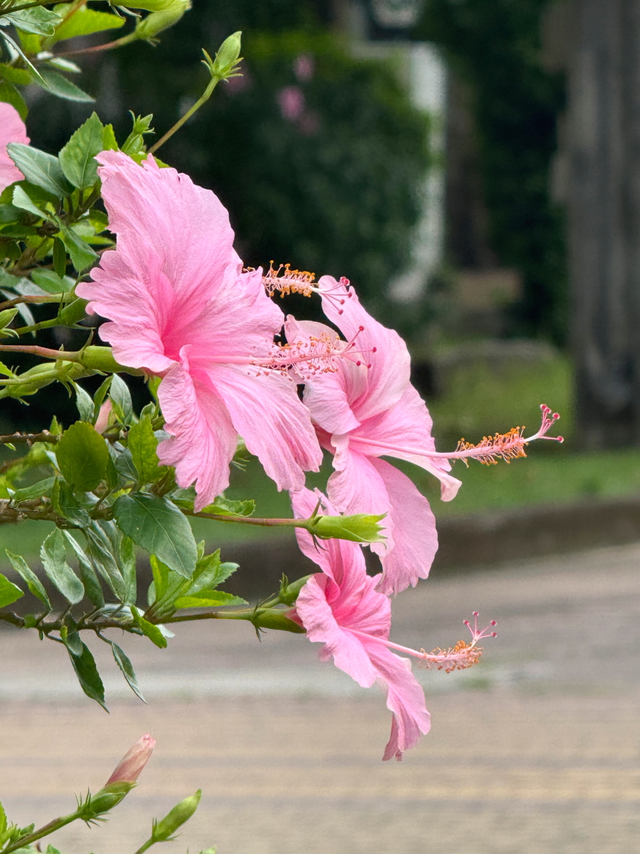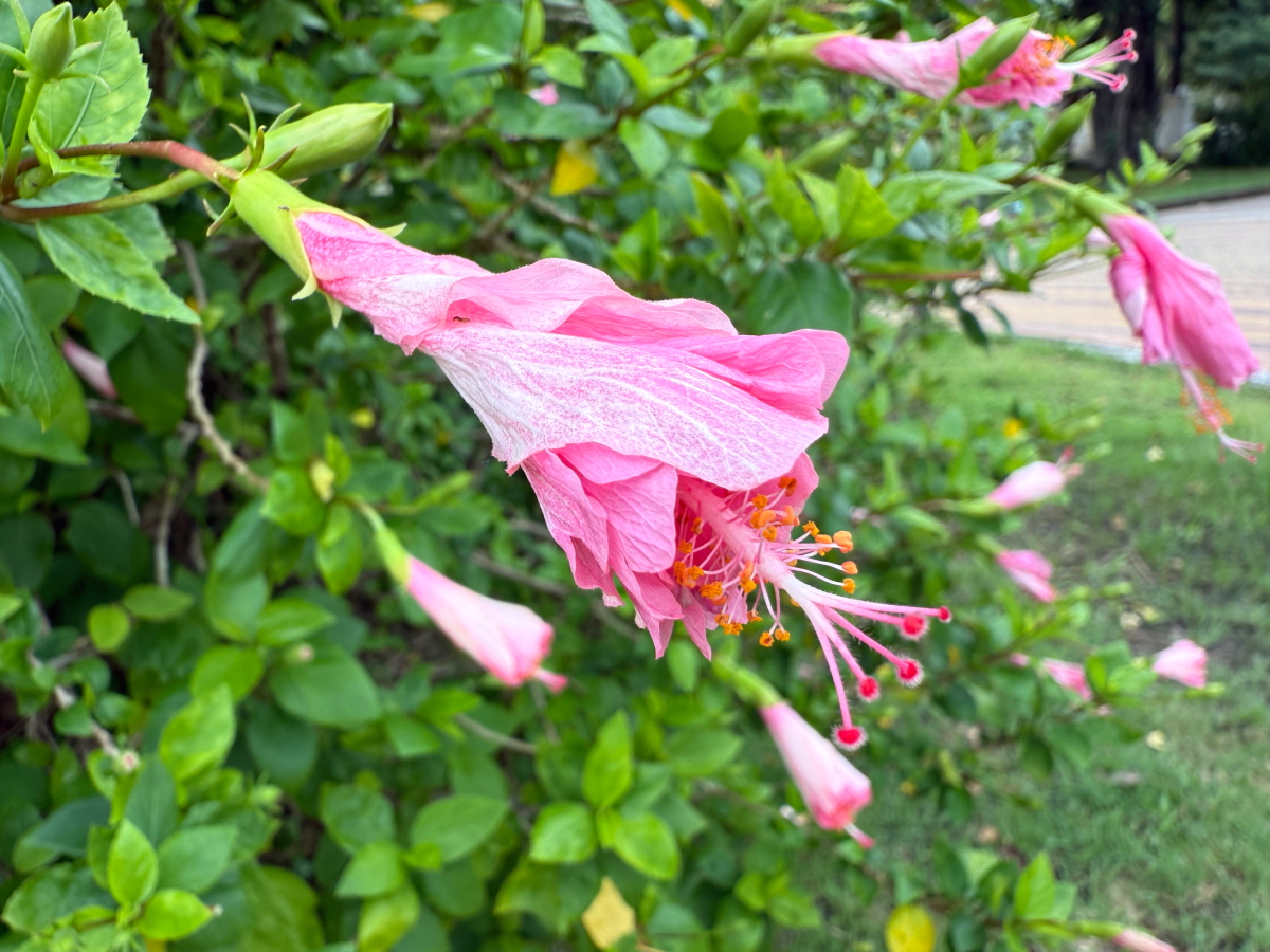 ピンクのお花はお寝坊さん、お昼過ぎの目覚めのようです