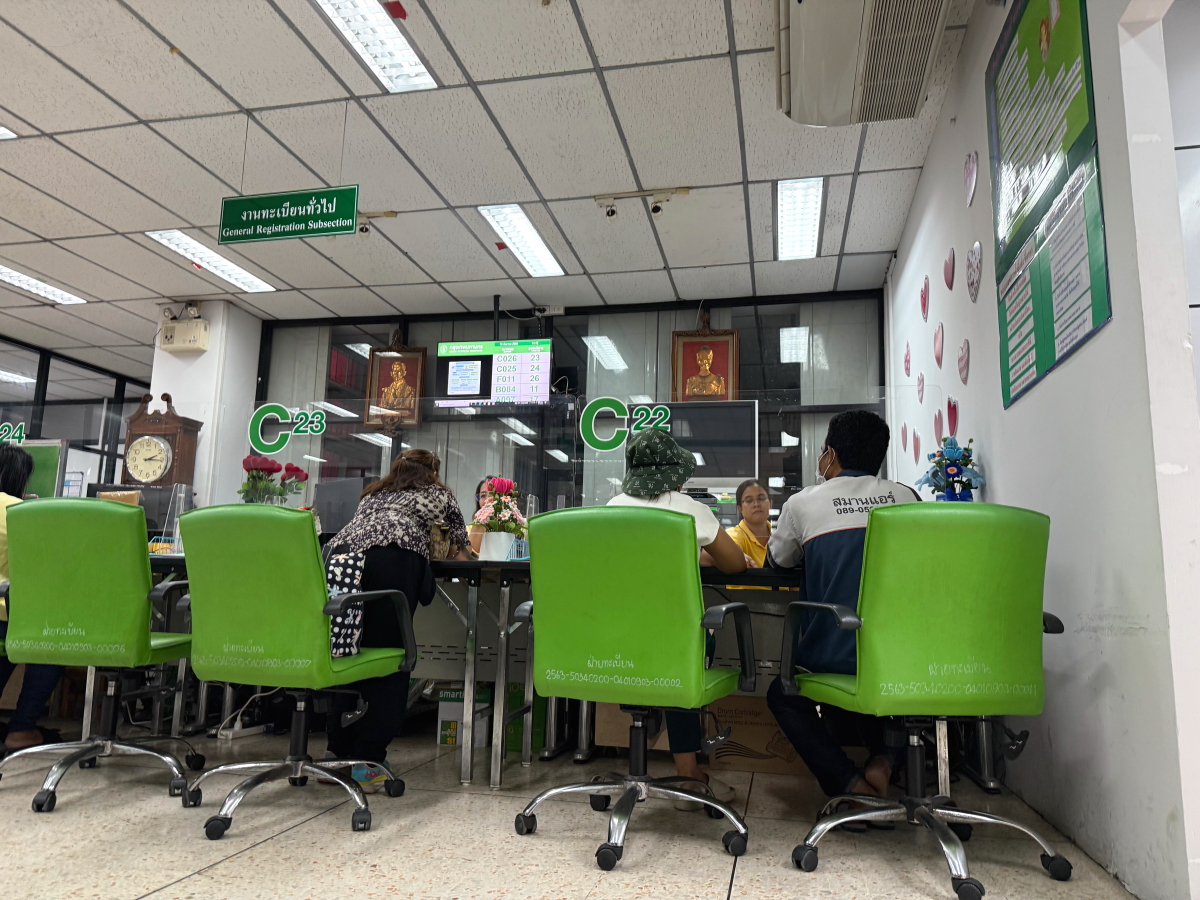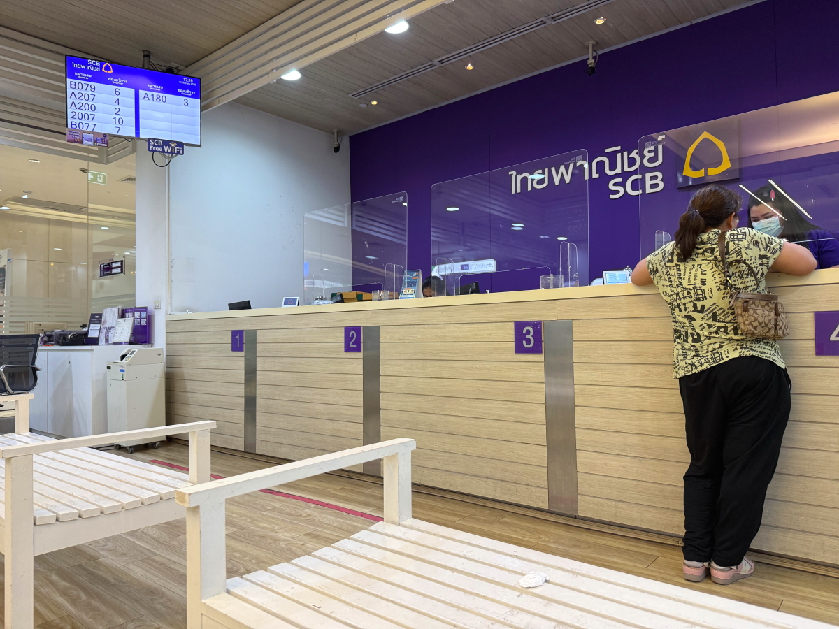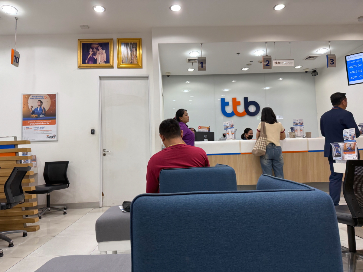銀行入り口で整理券もらって、天井の掲示板に表示される番号で順番待ち