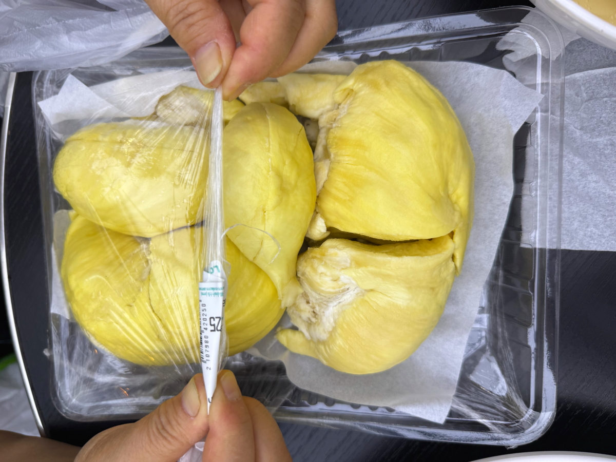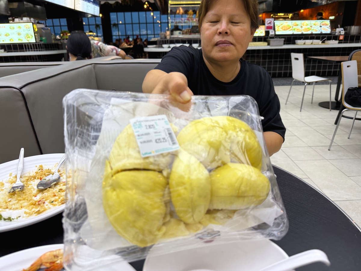 1階のスーパーで買ってきたドリアンがデザート、かなりズッシリしてるので2人でも全部は食べられません