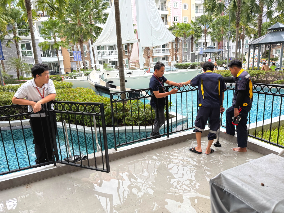 宿泊する部屋のベランダが水浸し、修理対応で4人も駆けつけてくれました