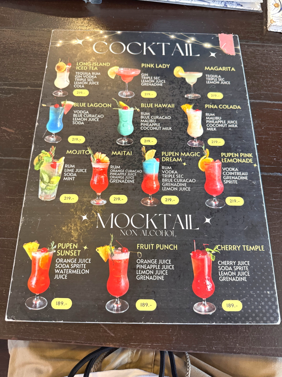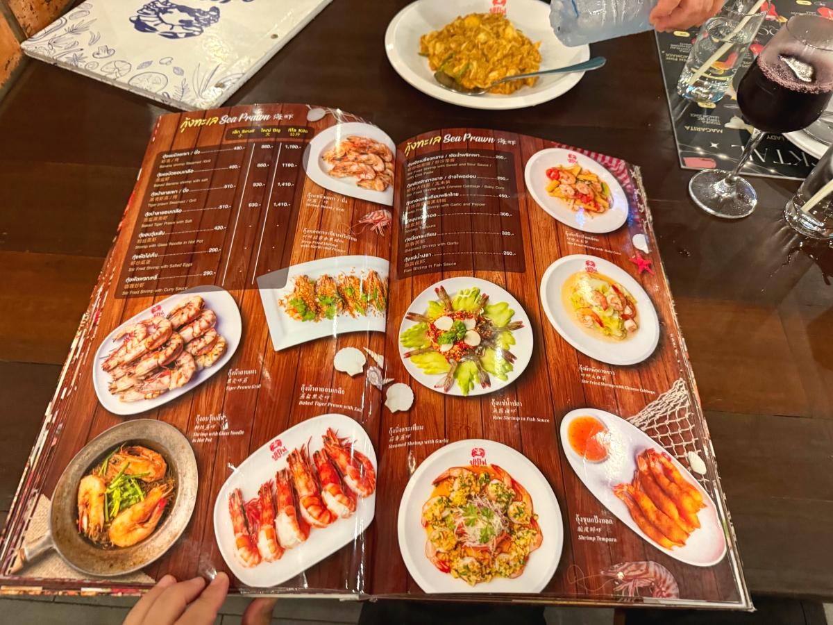 夕食は海辺のレストラン、ほぼ外国人相手の派手な飾り付け
