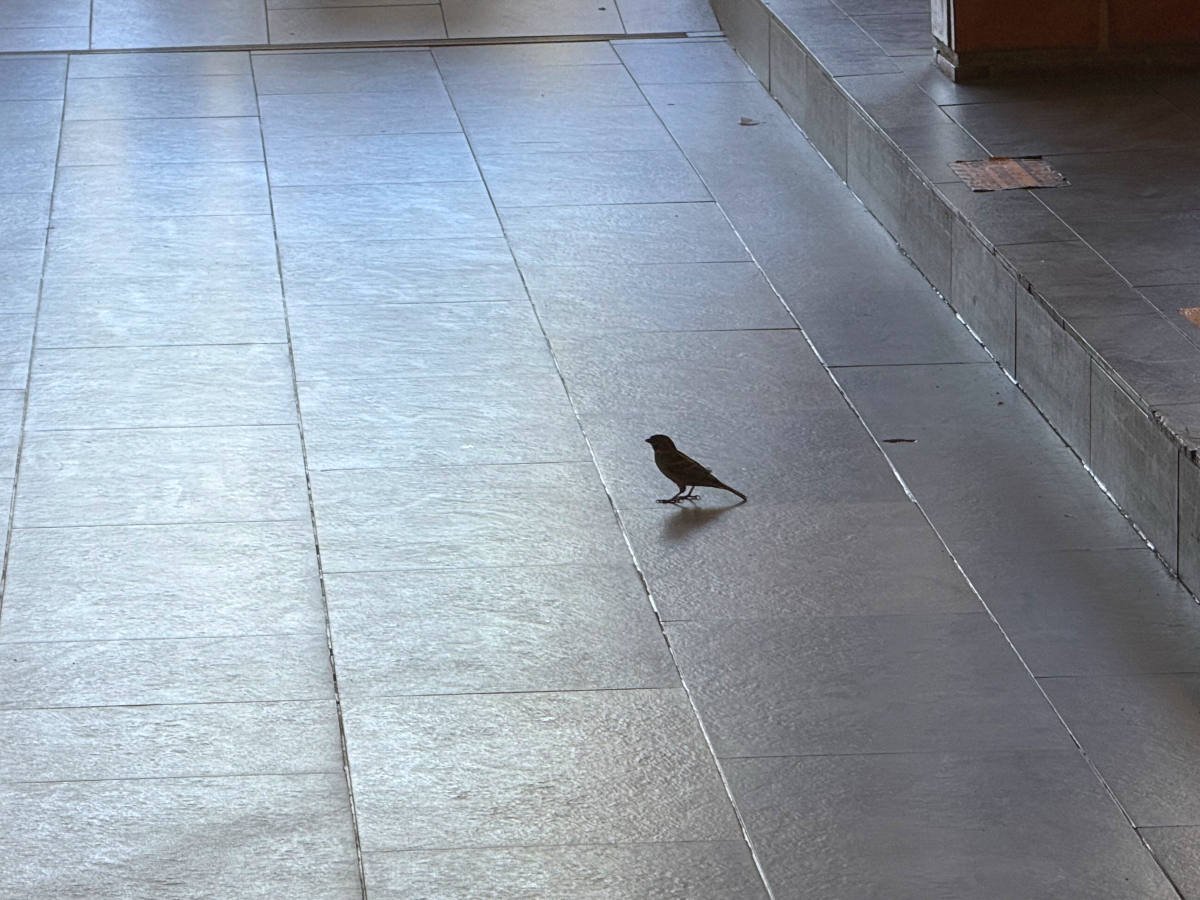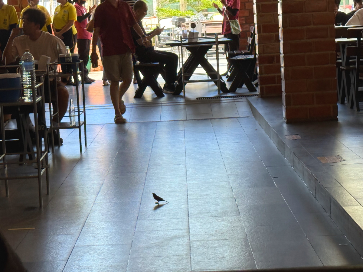 店内をおこぼれ狙いの野鳥がウロウロ