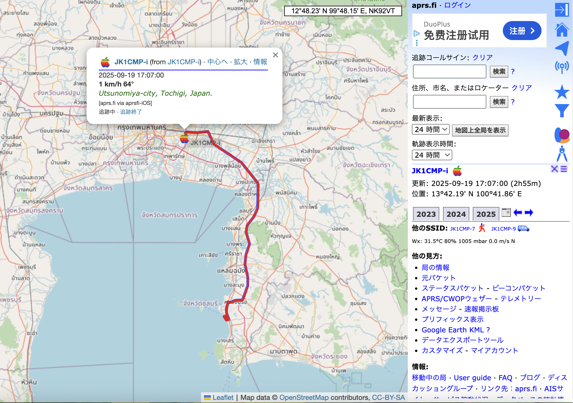 アマチュア無線の仕組みで移動経路を記録しました