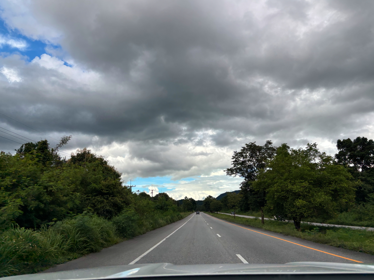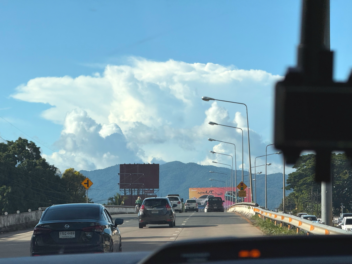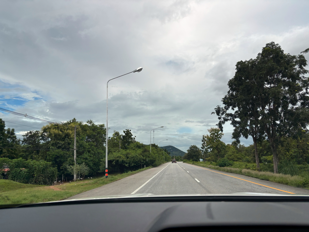 タイにはトンネルは無くて、山の低いところを直線道路で越えます