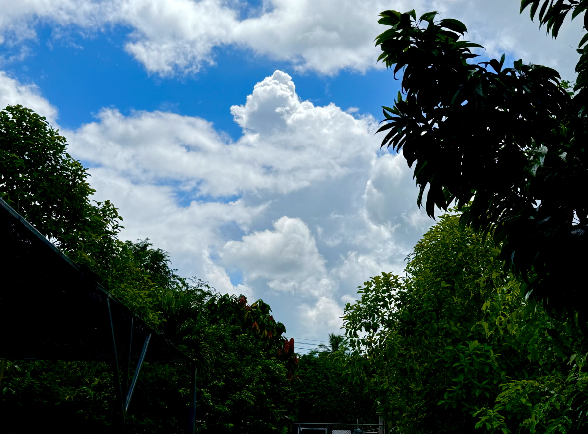 22日、朝から入道雲が湧き上がります、雨季ですね〜