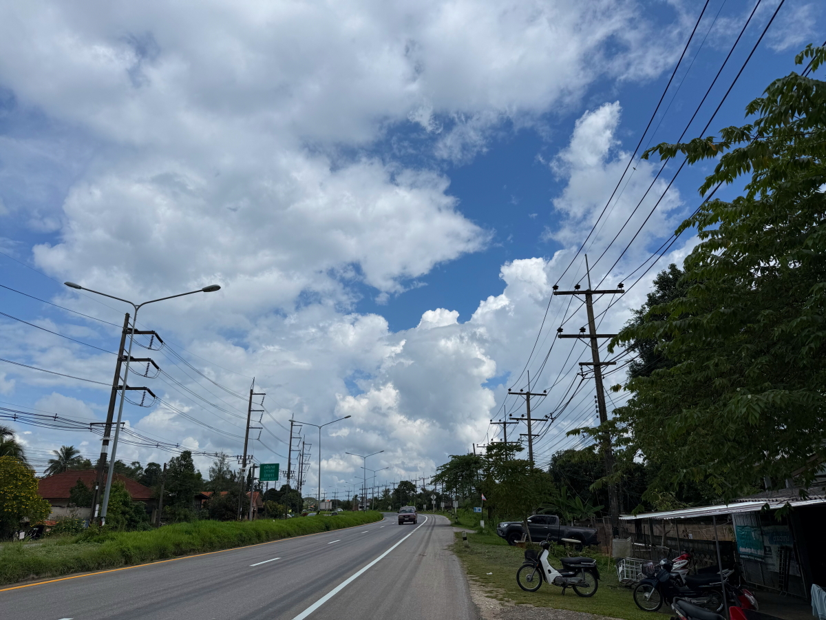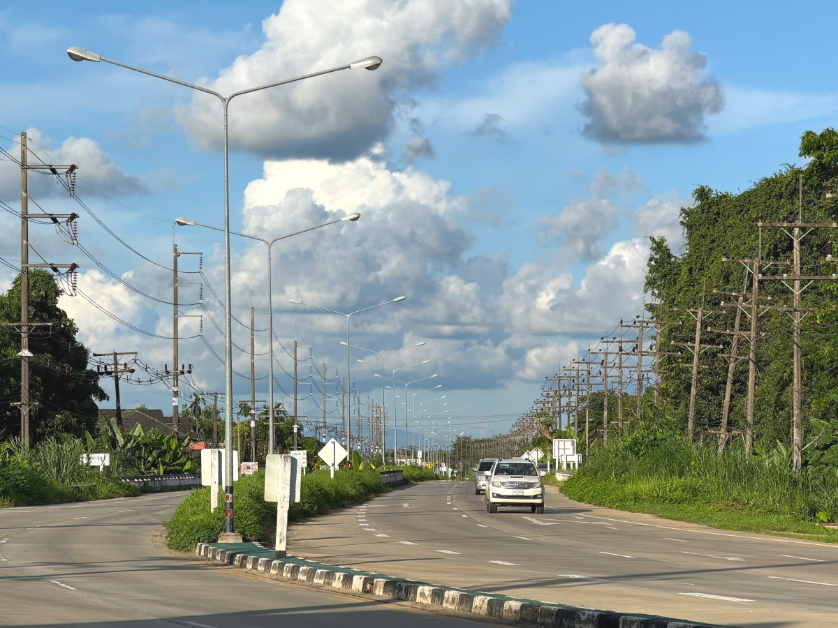 21日、チェンライ移動の道、広大な大陸にまっすぐな道を通しています