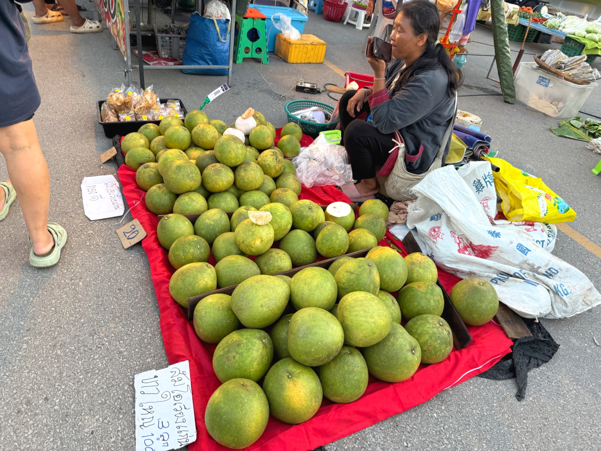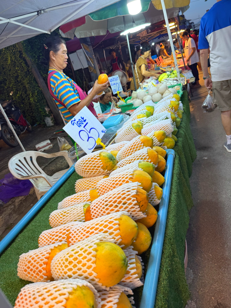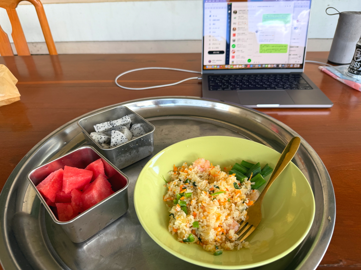 お昼はチャーハン、スイカ、ドラゴンフルーツ