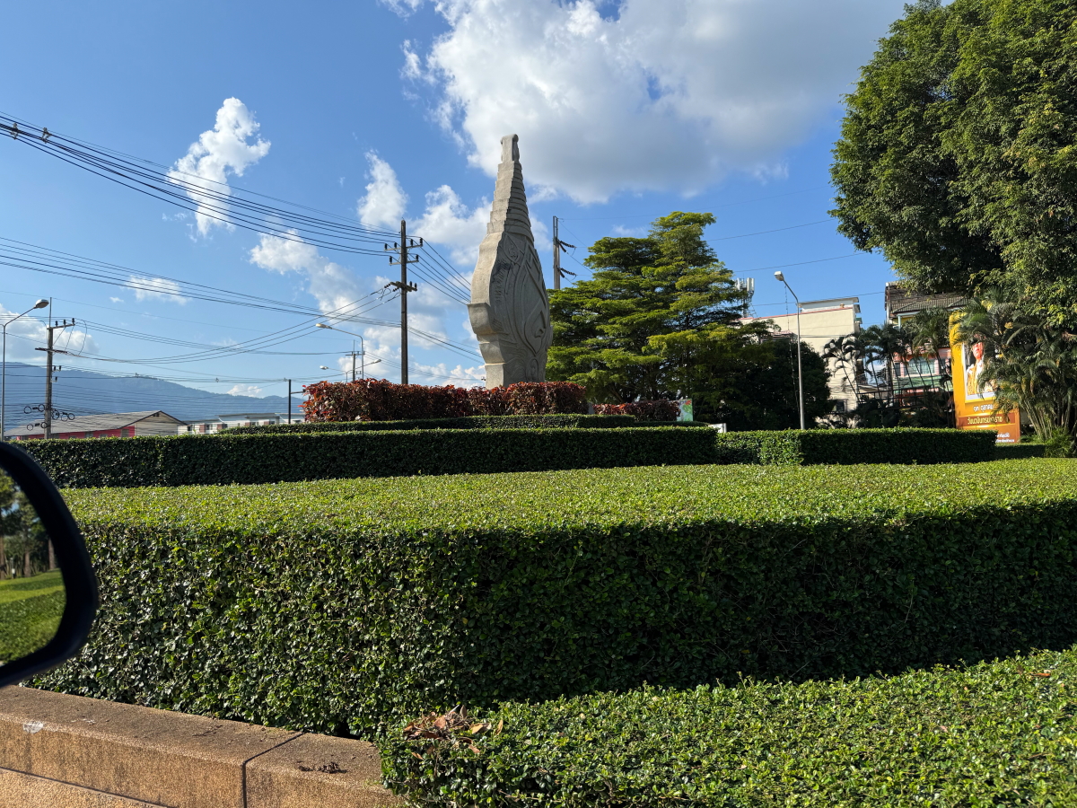大学入り口のモニュメントを裏側から撮影