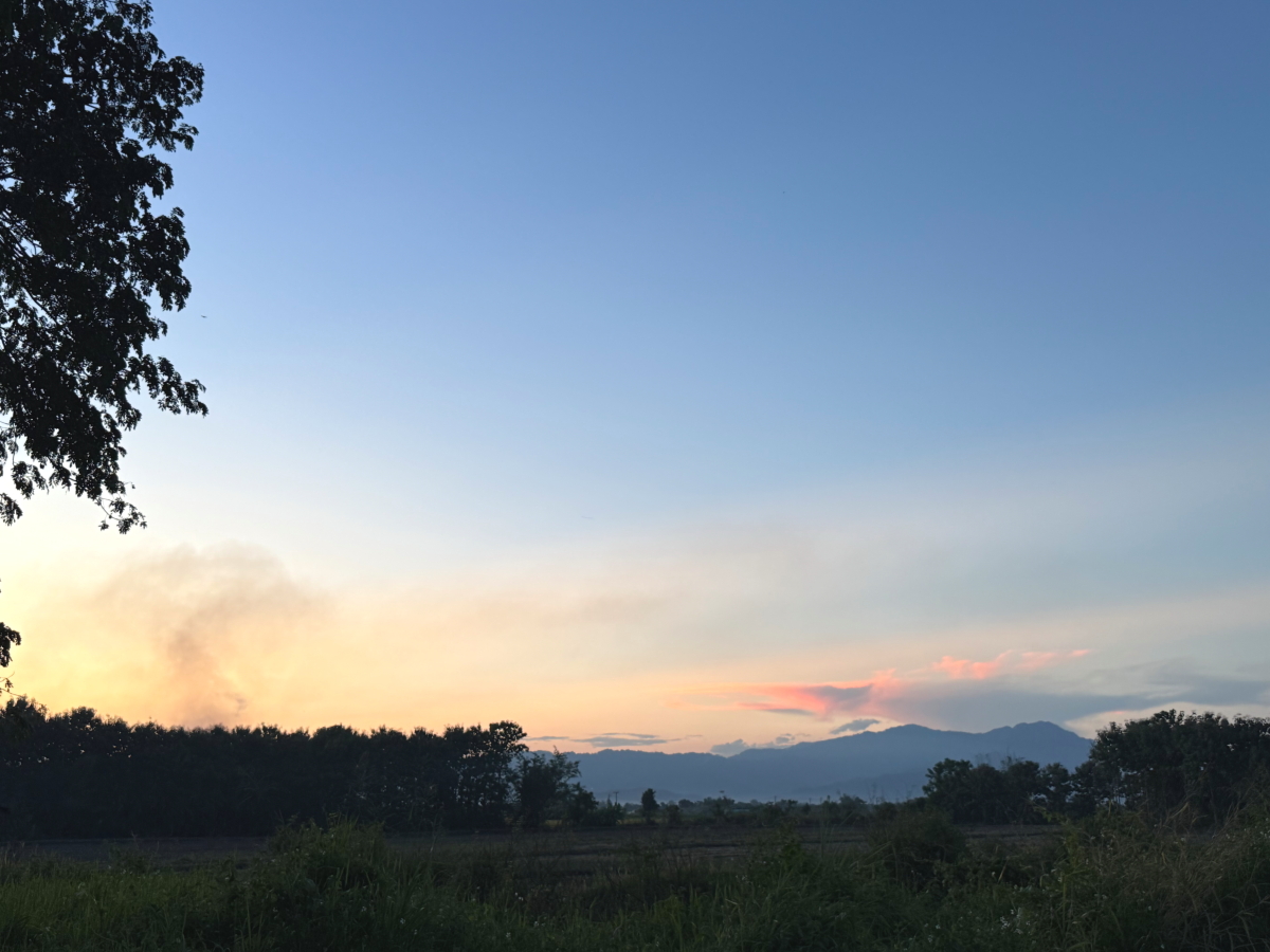 西の山々に夕焼け雲