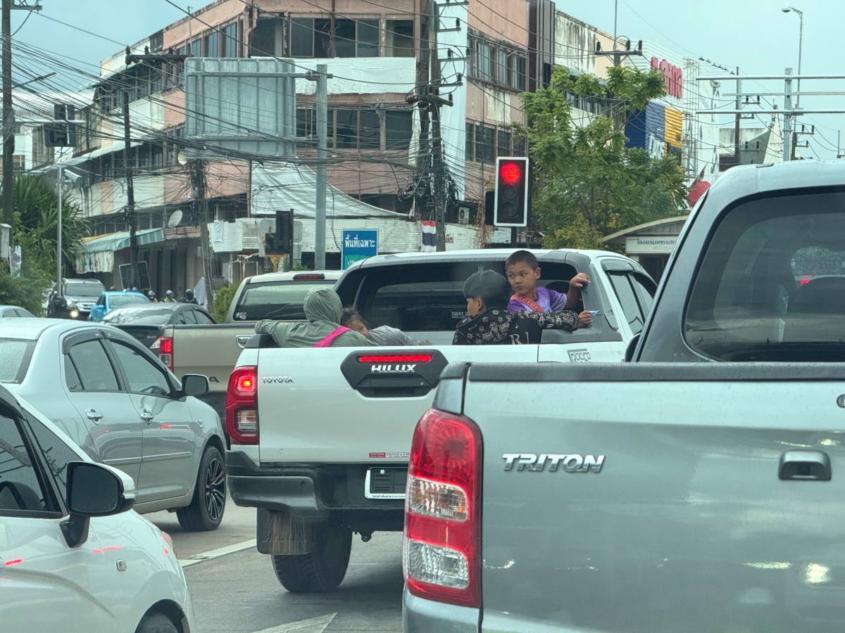畑からの帰りは日本ではできない荷台からの撮影