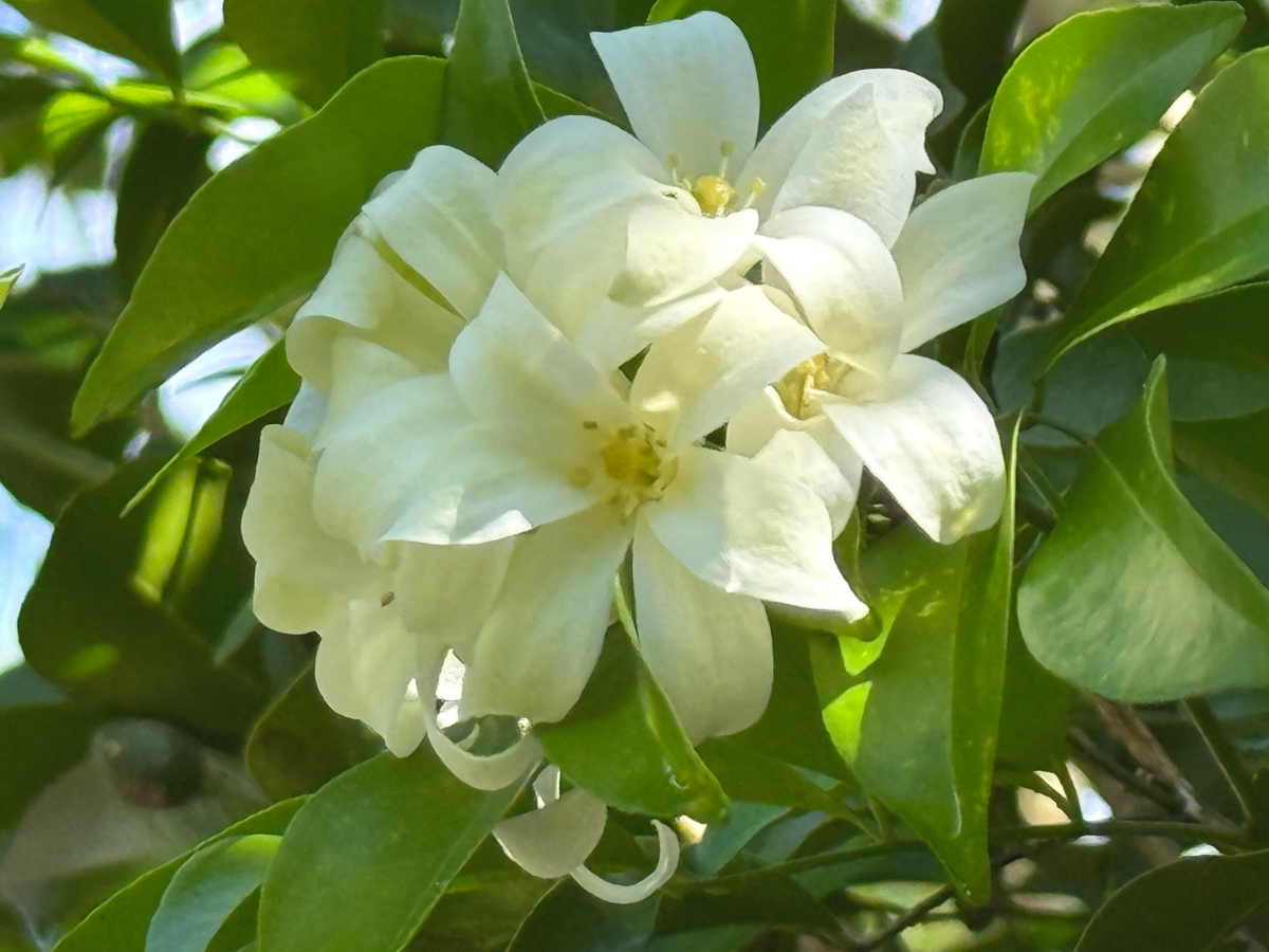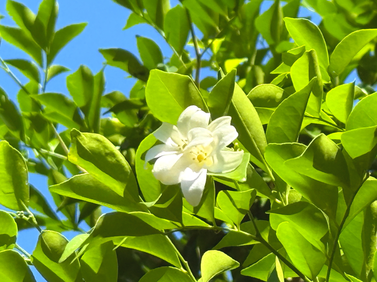 庭の木にお花発見