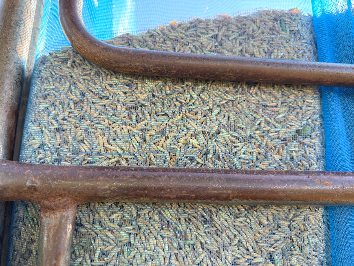 刈り取ってすぐに袋に詰めます