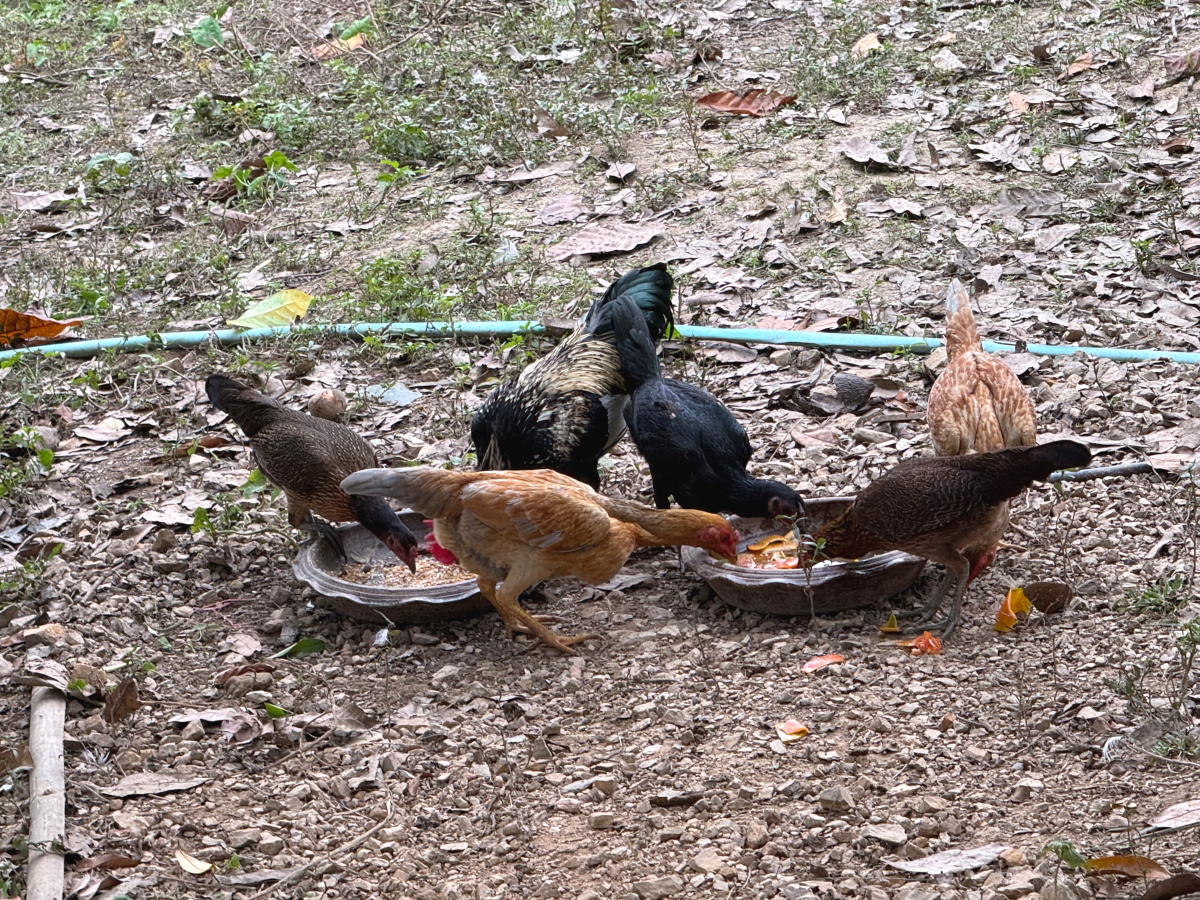 ニワトリたちにご飯をあげます