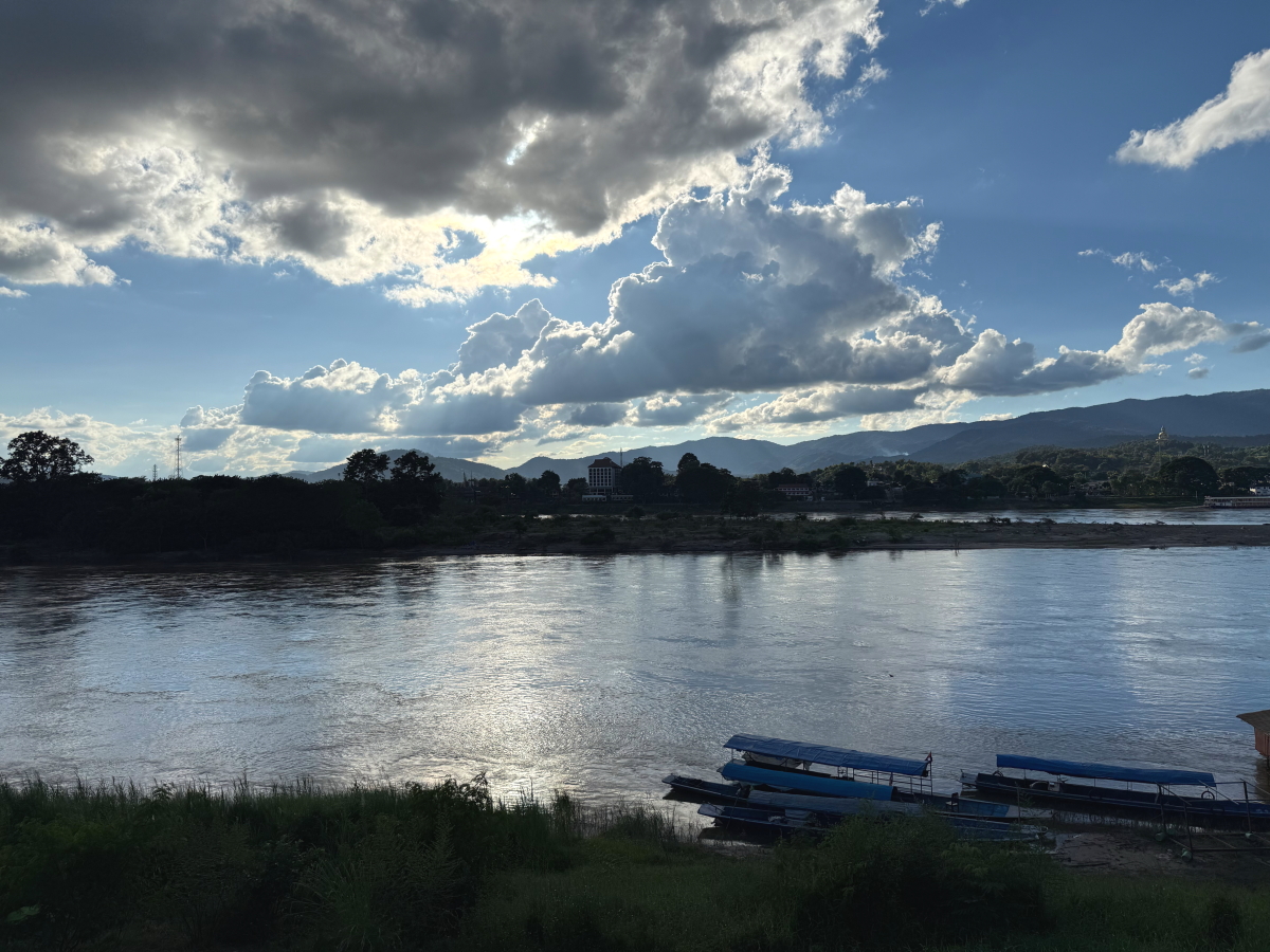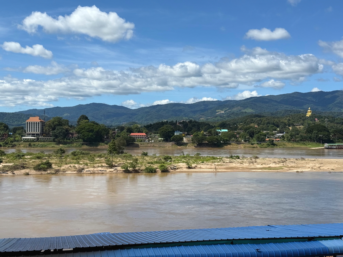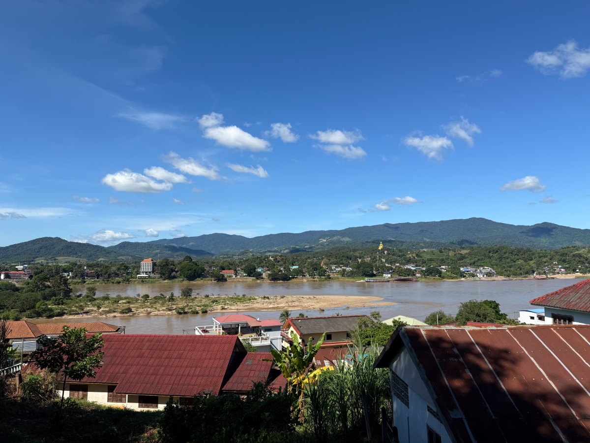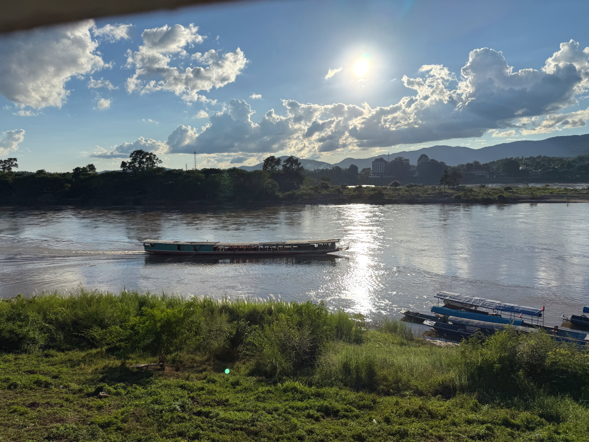 山の斜面側の部屋だったのを、川側に変えてもらって、部屋からメコン川を眺めます
