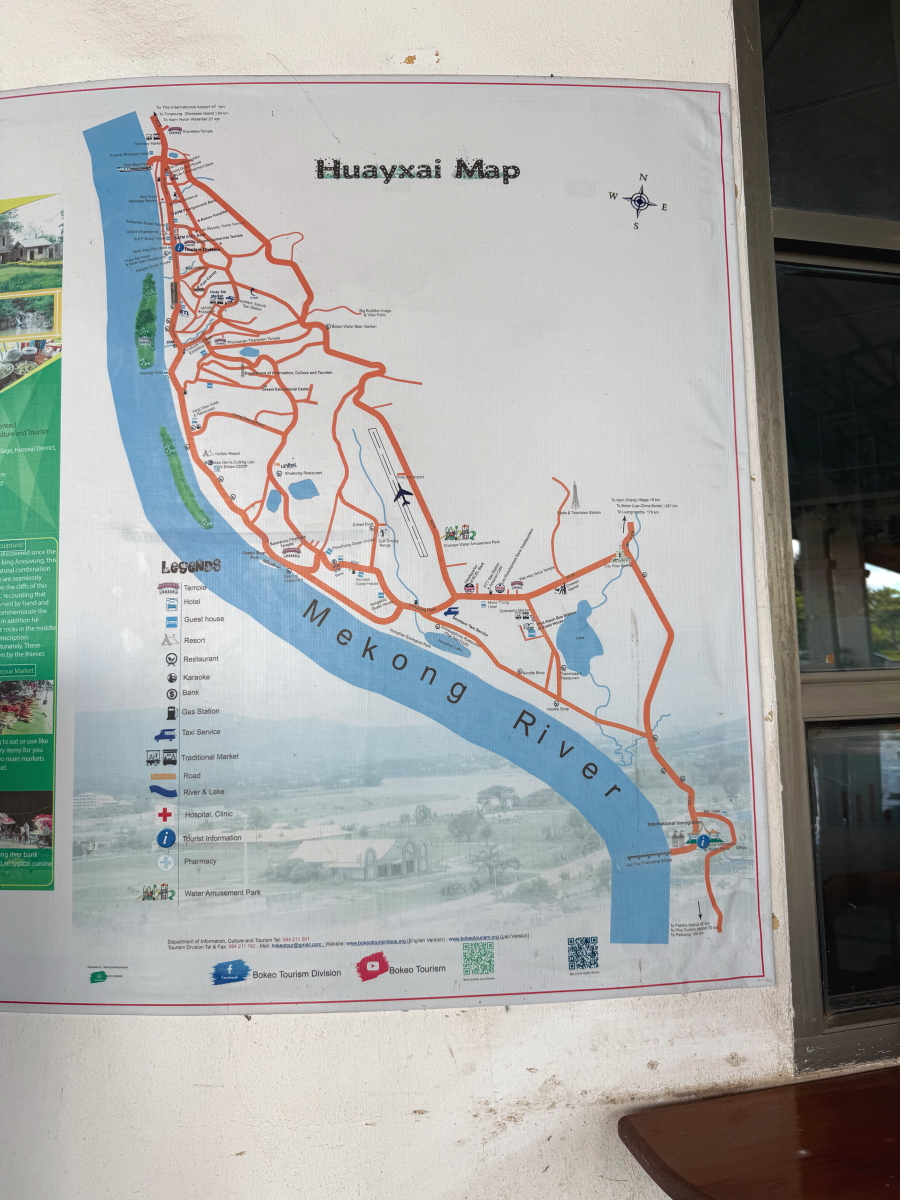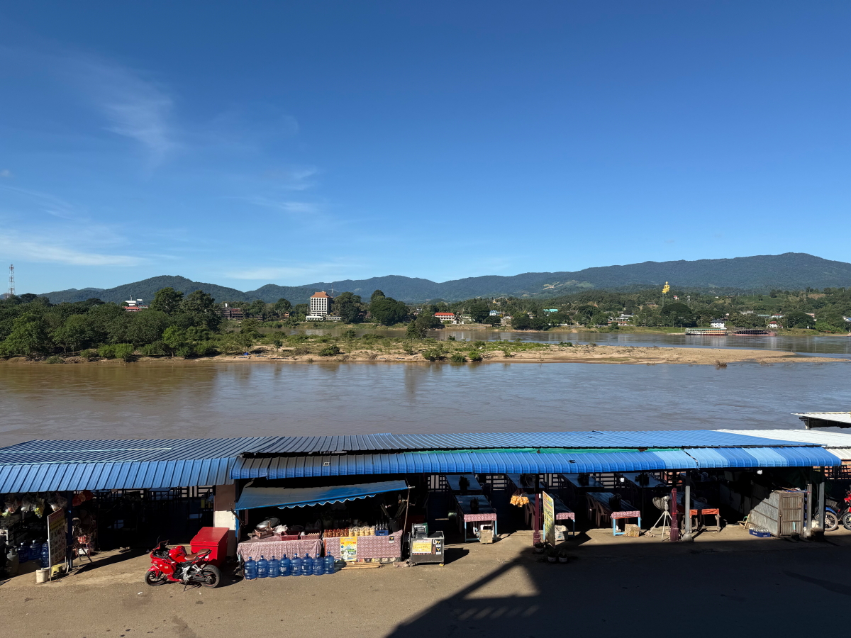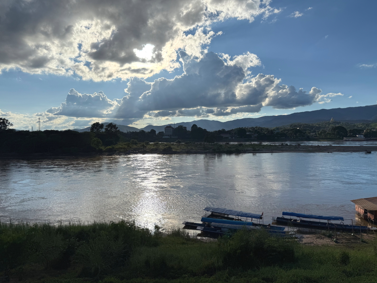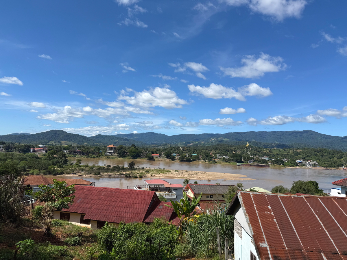 山の斜面側の部屋だったのを、川側に変えてもらって、部屋からメコン川を眺めます