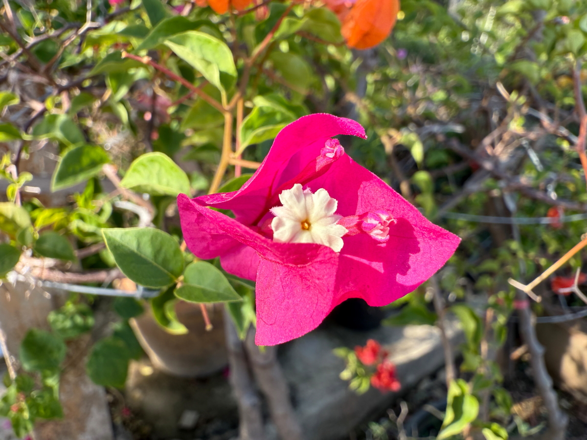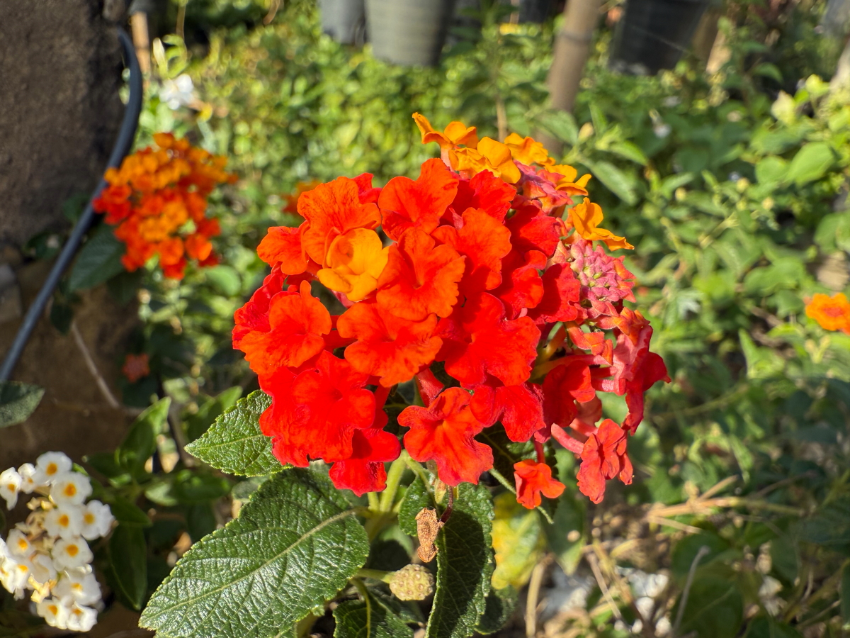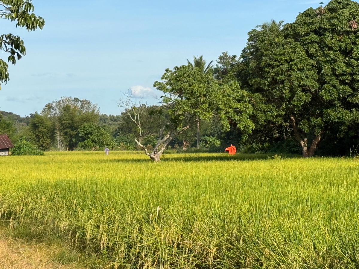 お花屋さんの裏の田んぼ、真っ赤な衣装のカカシが目立ってました