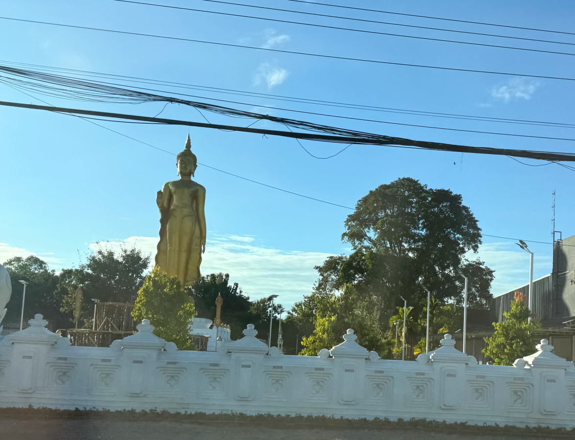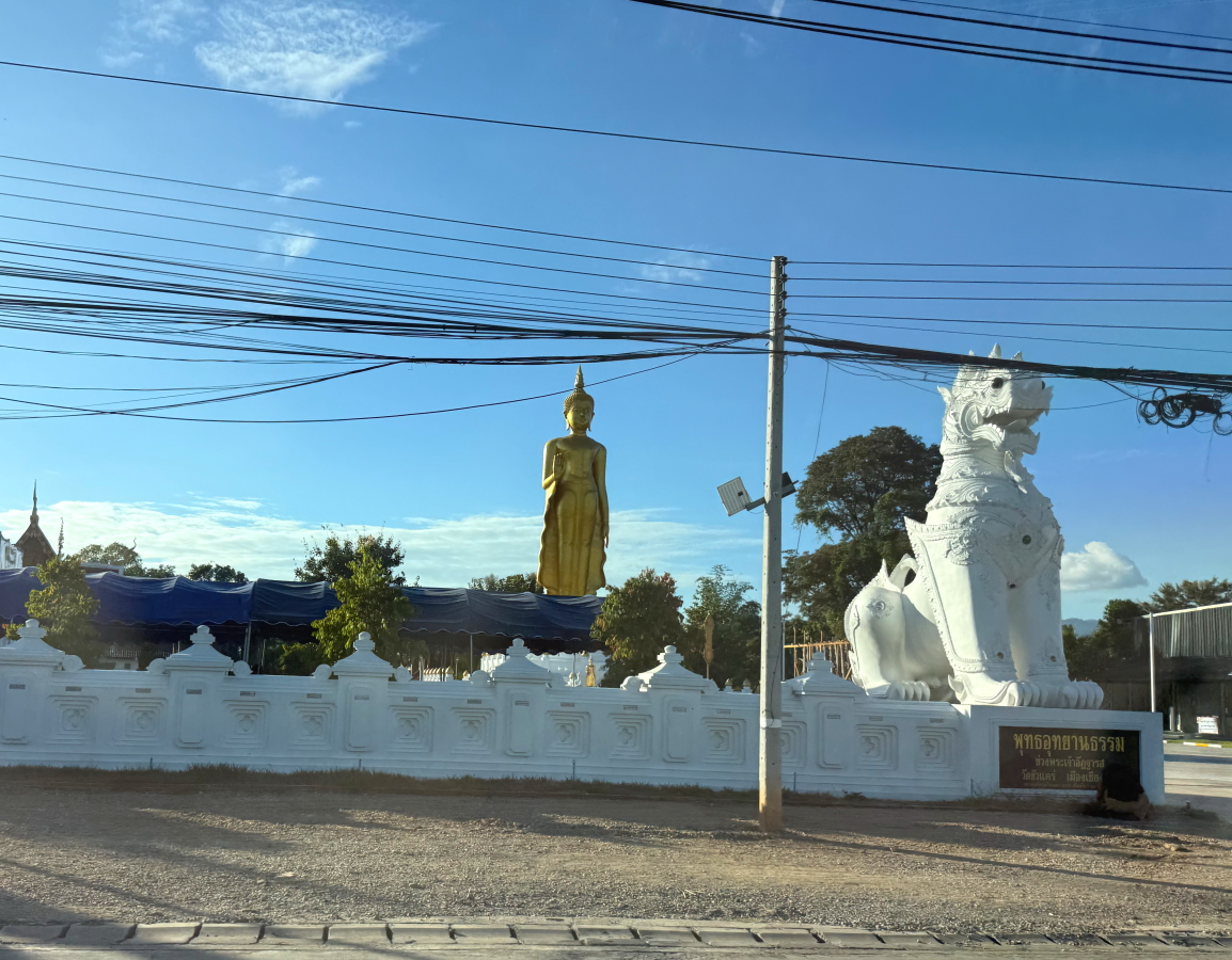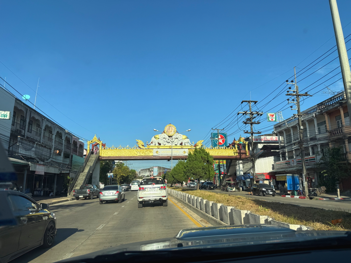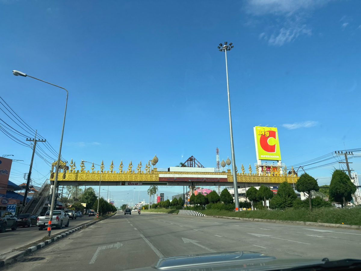 街を貫く国道にかかる歩道橋にも仏教色が色濃く出てます