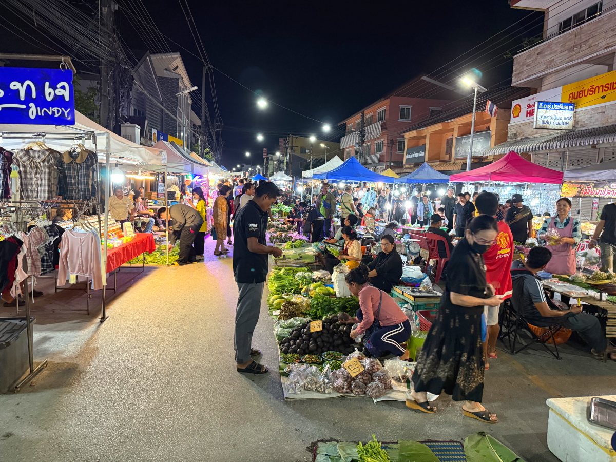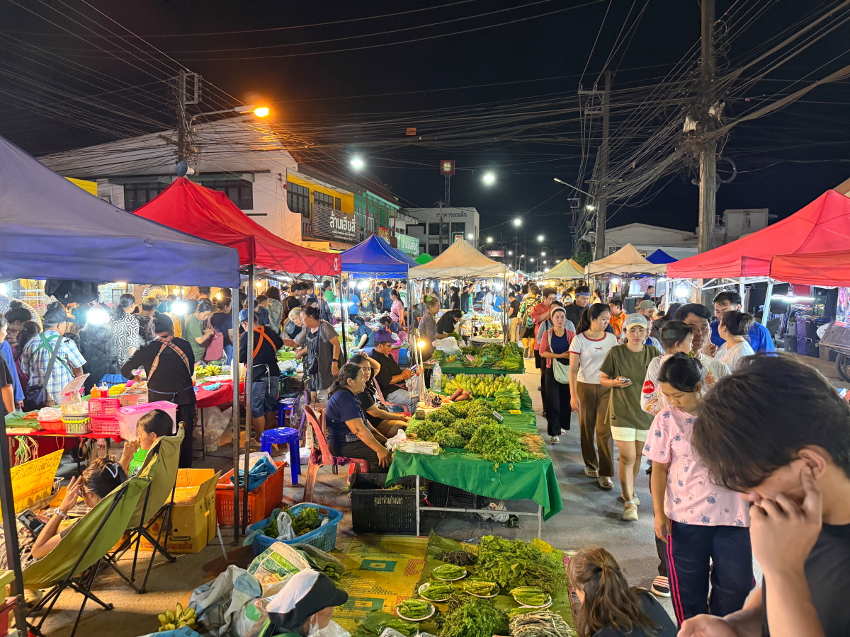 金曜日はメーチャンの街の市場、道路封鎖して大々的に開催されます