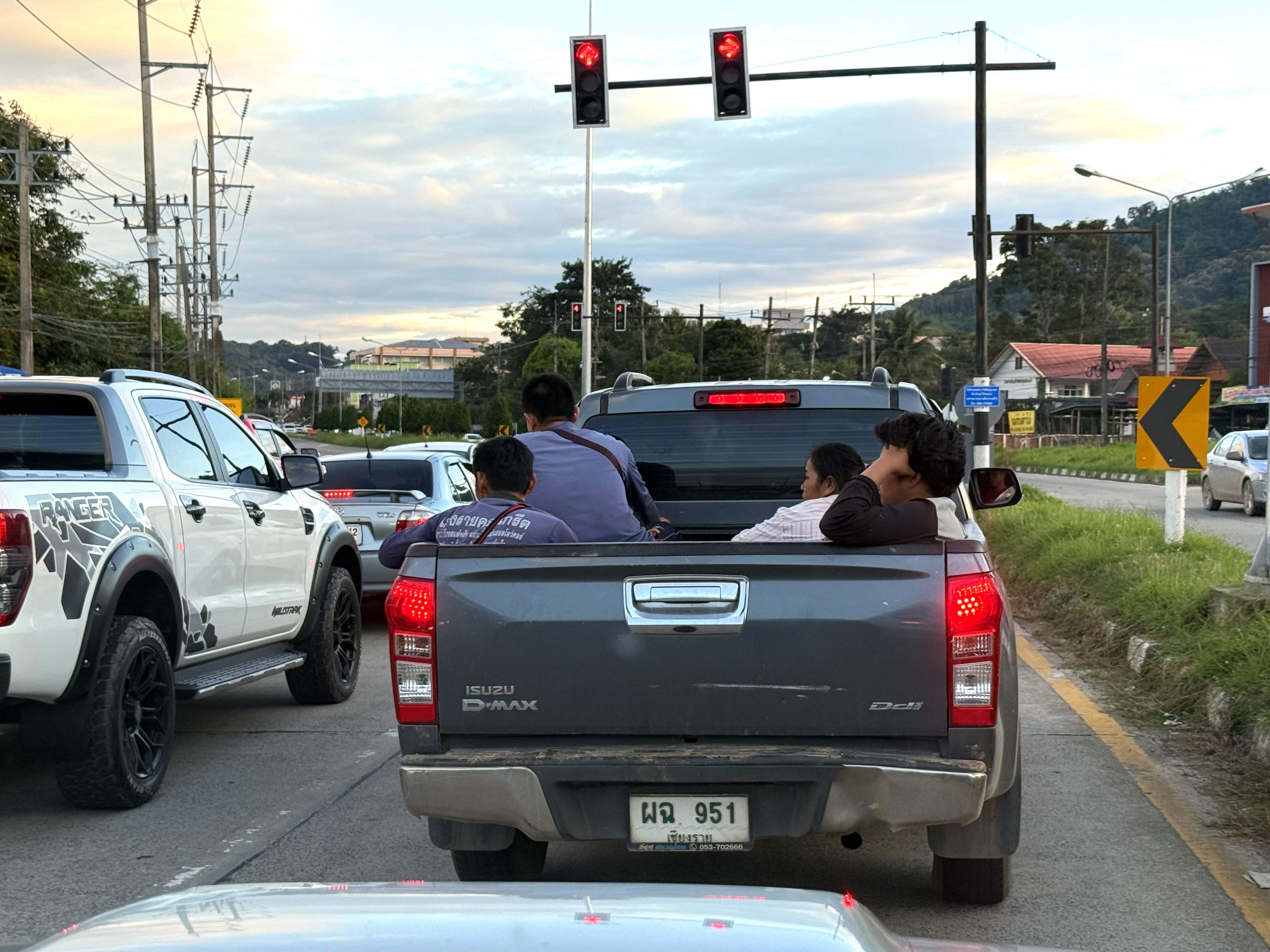 タイの家族の一般的な移動光景