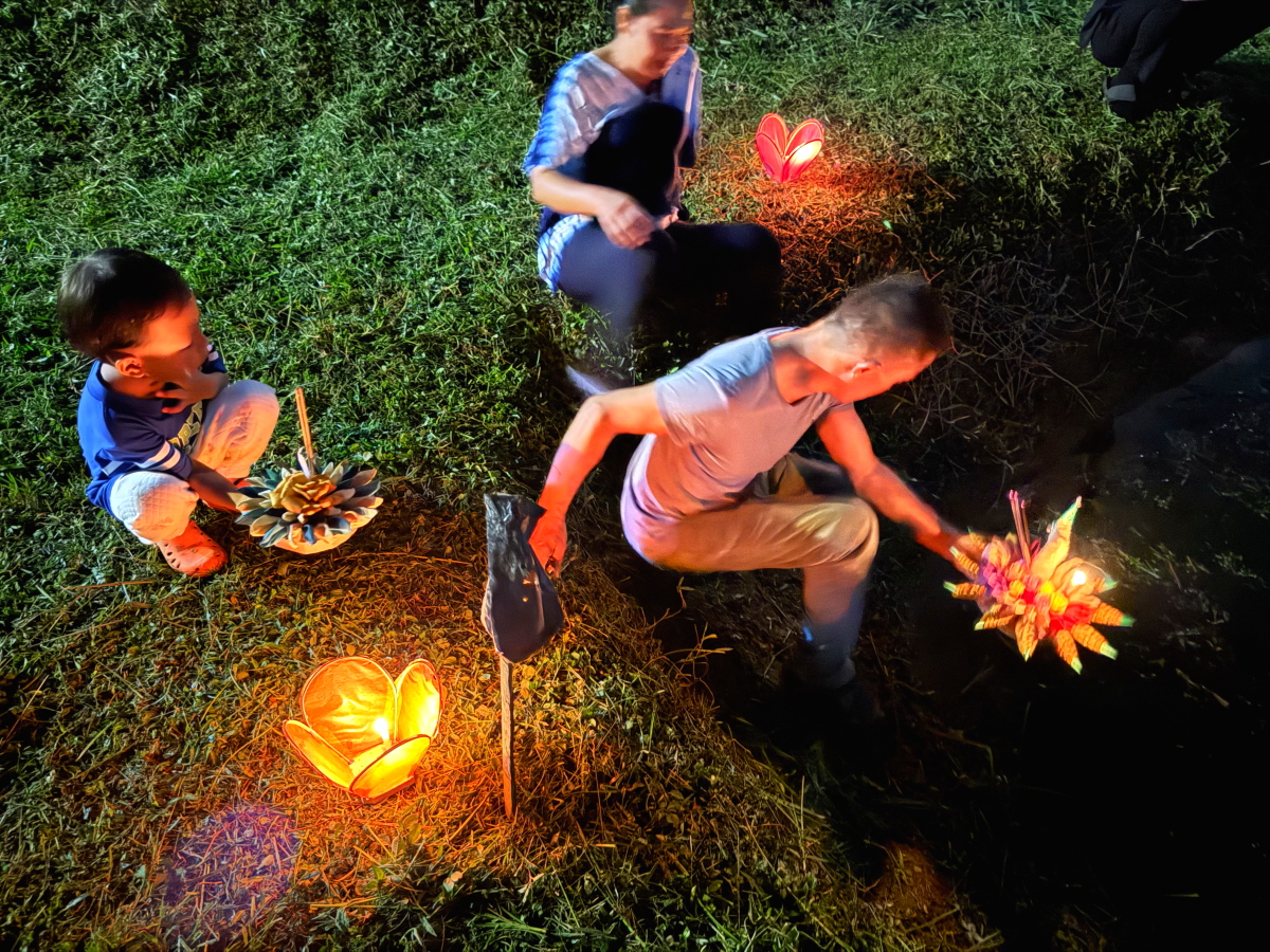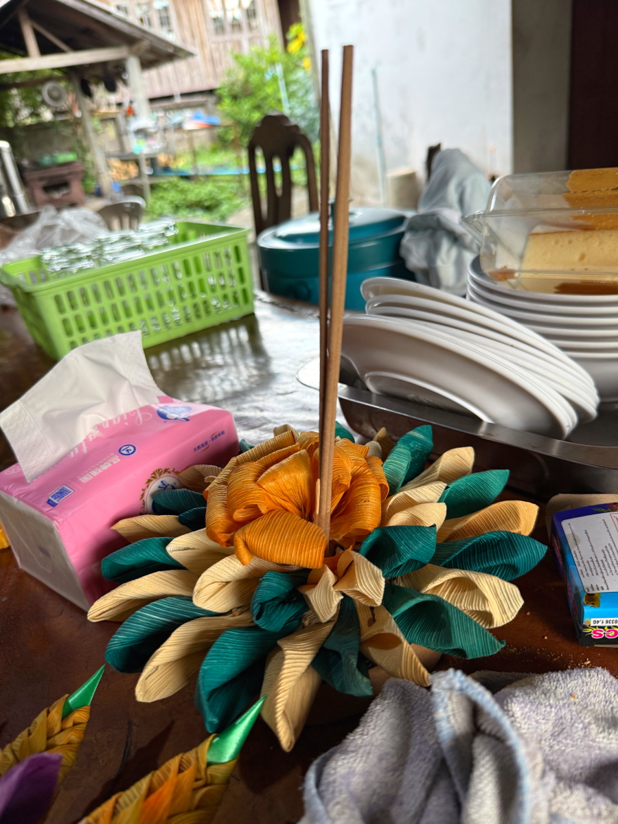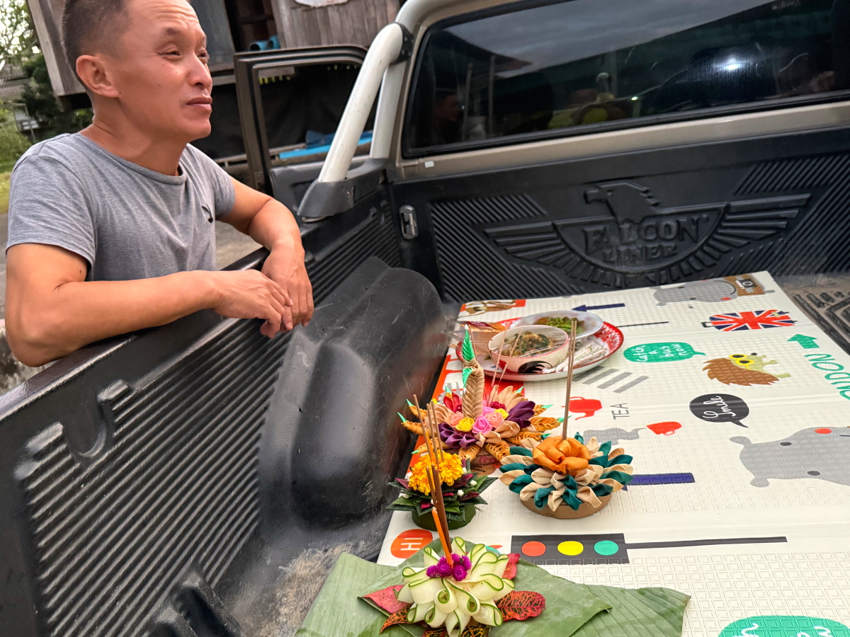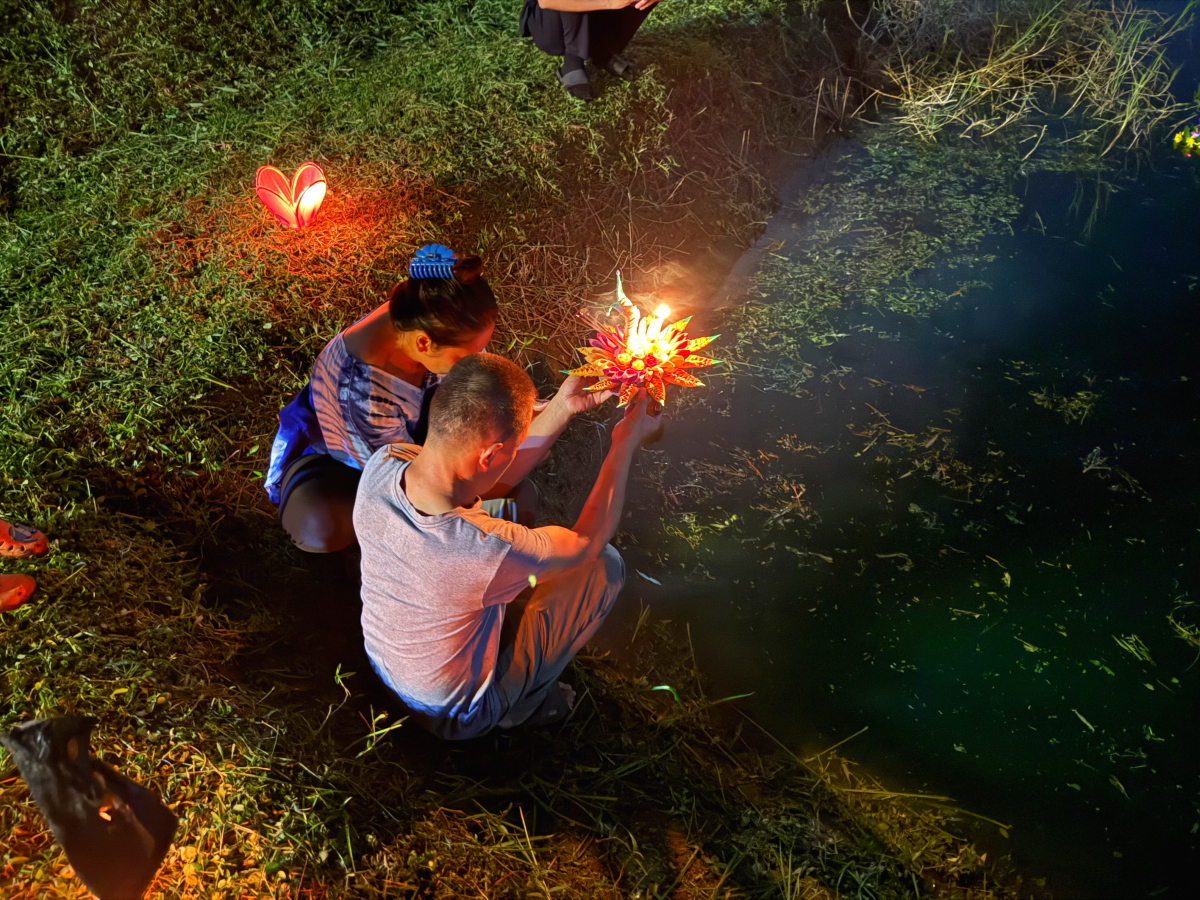 ロイカトーン(ロイクラトン)で使う、川に流す蝋燭の台座を準備