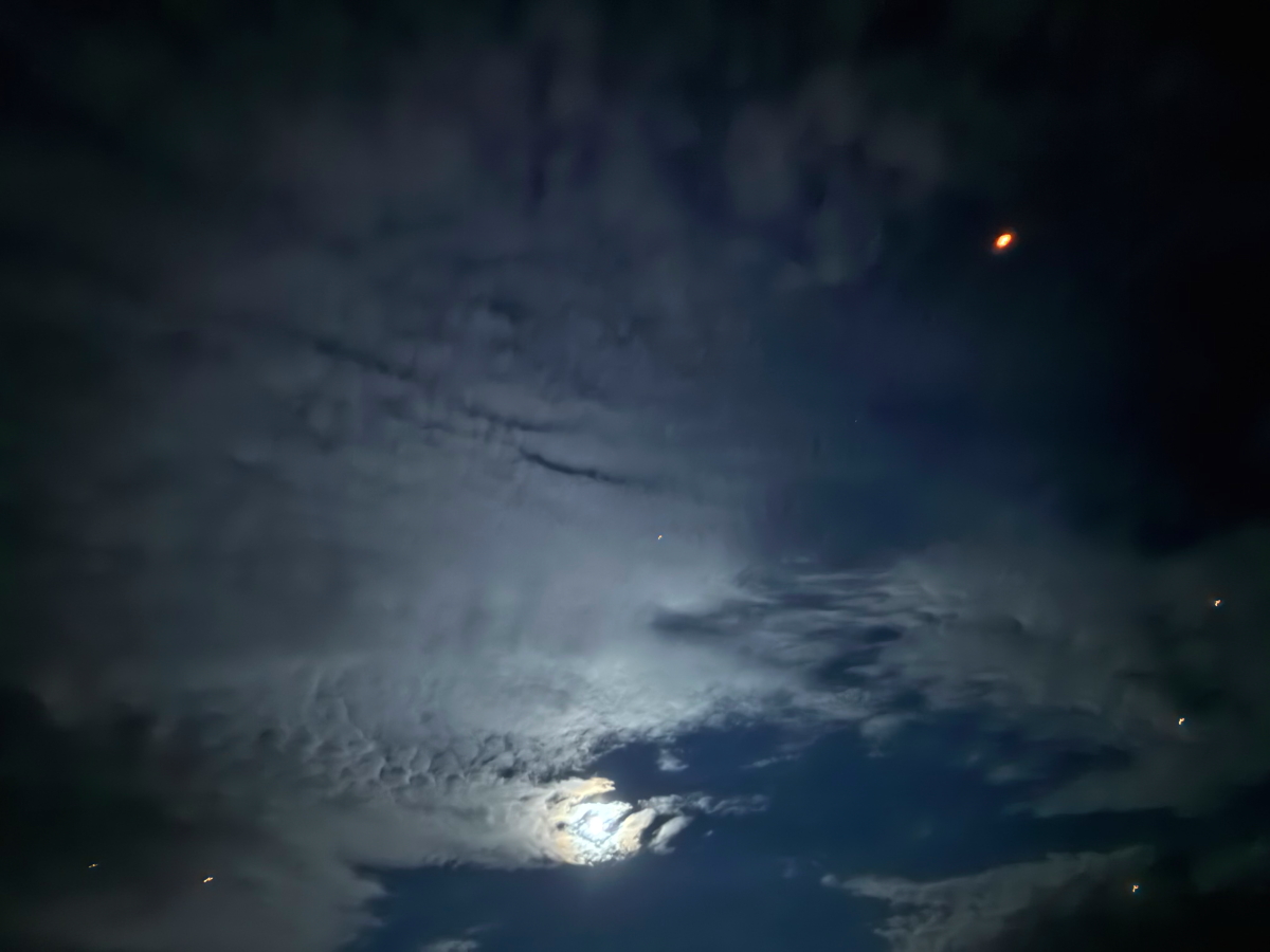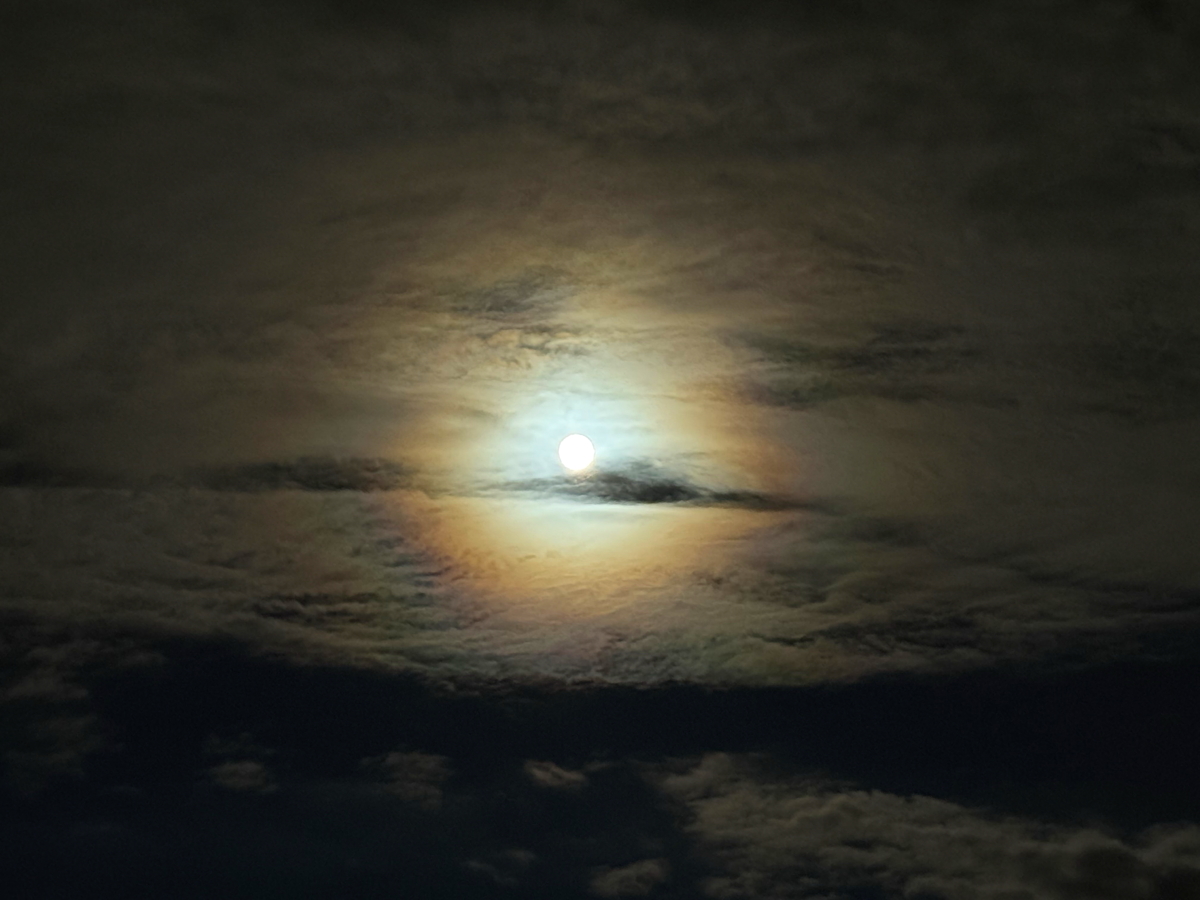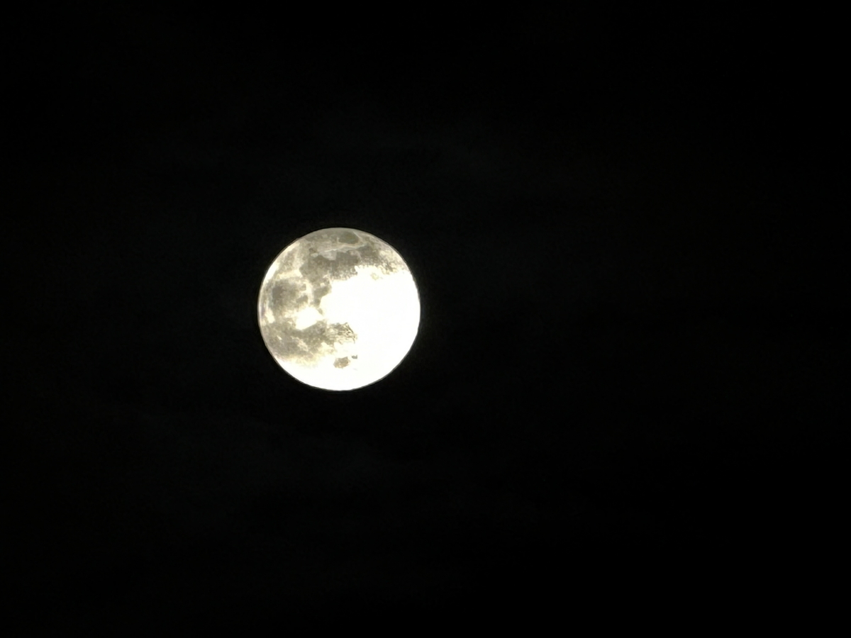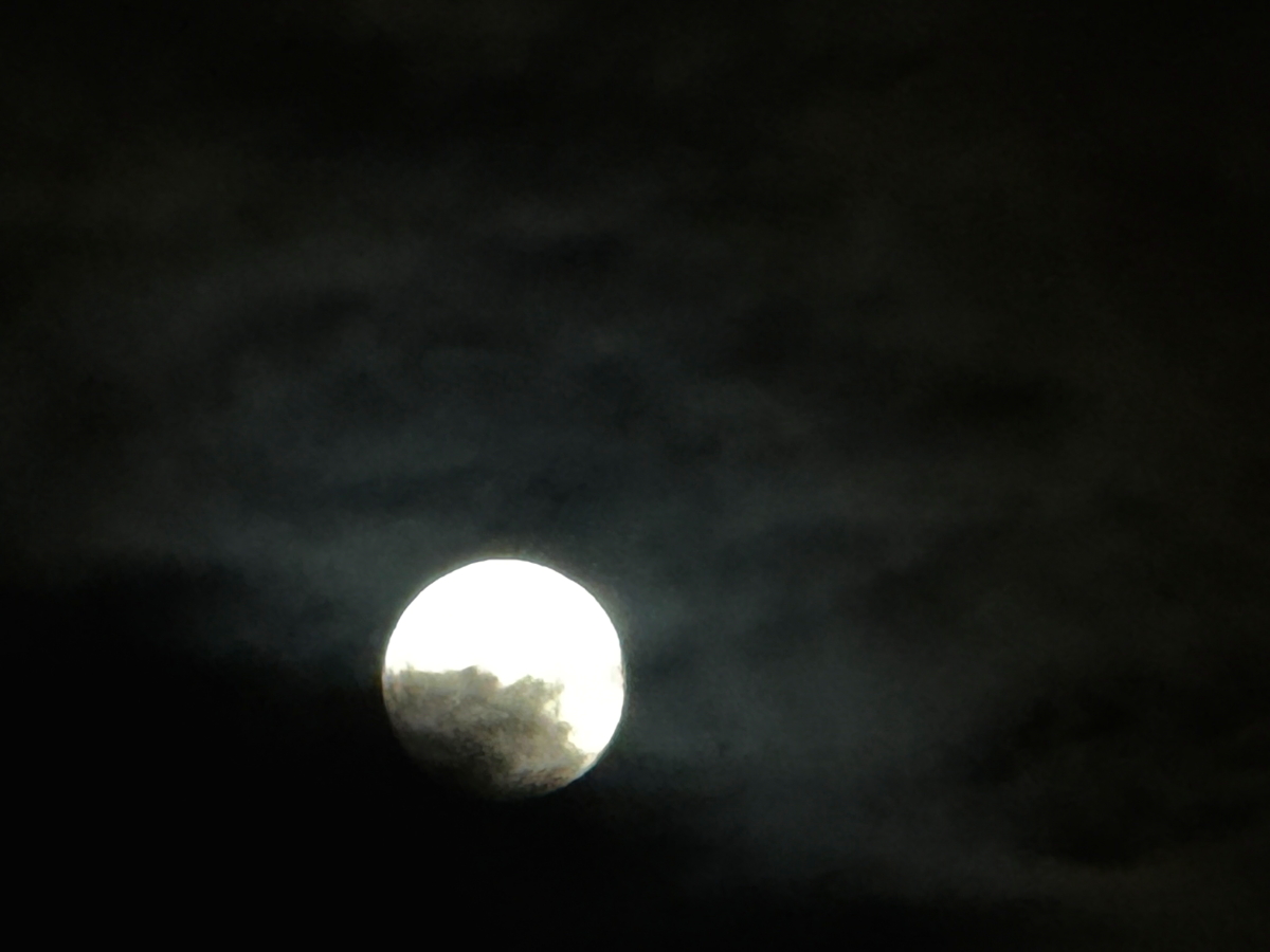 今季最大の満月、スーパームーンが雲から顔を出しました