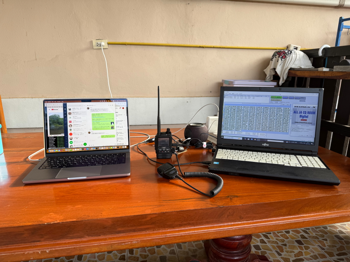 翌朝はネット経由で日本のアマチュア無線聴きながら、LINEでお話し