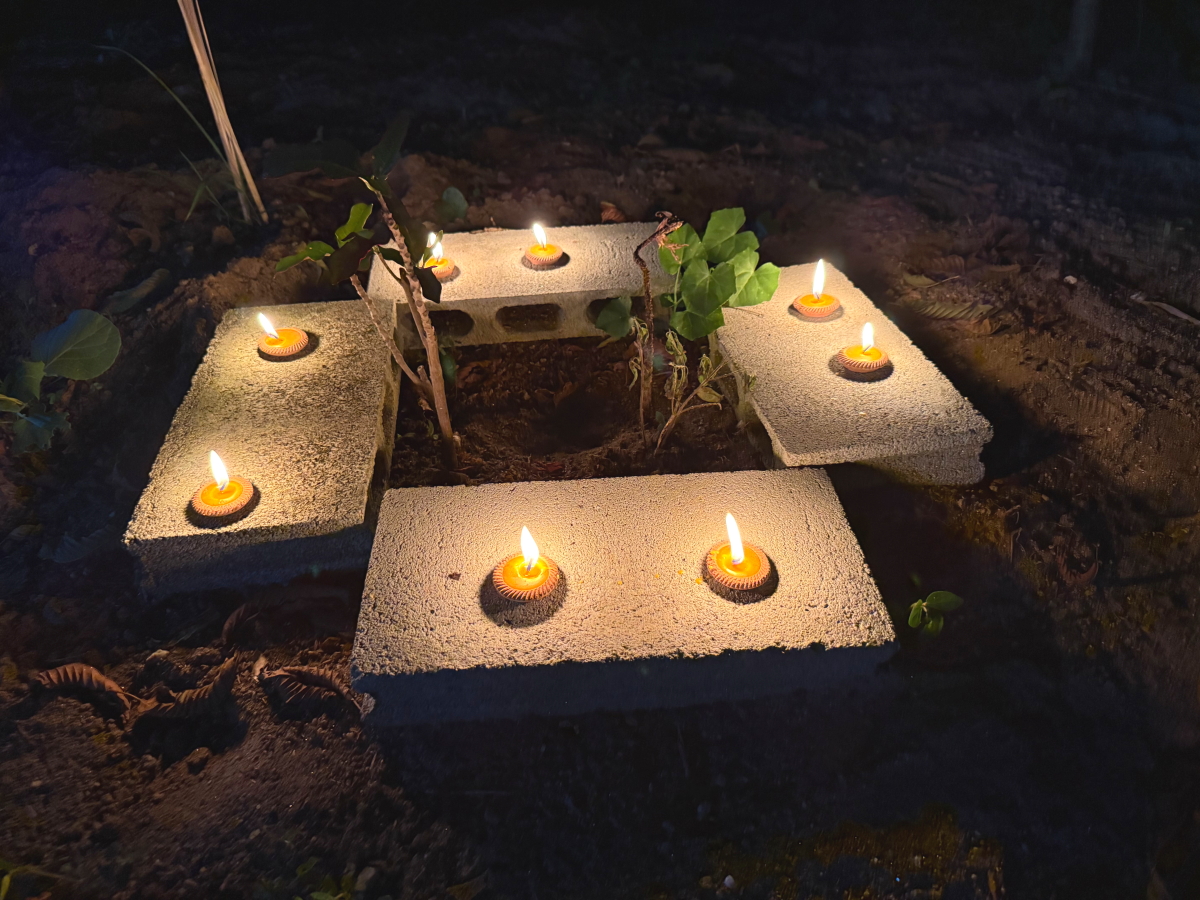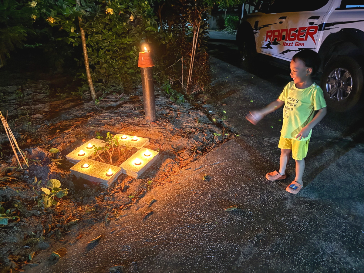 夜はロイクラトンの余韻で庭に蝋燭灯しました