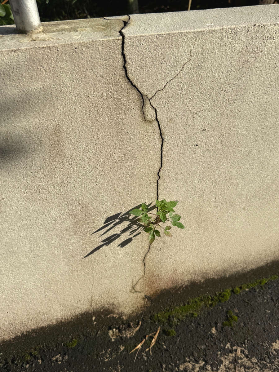 塀のひび割れからも芽吹く、熱帯の生命力の強さ