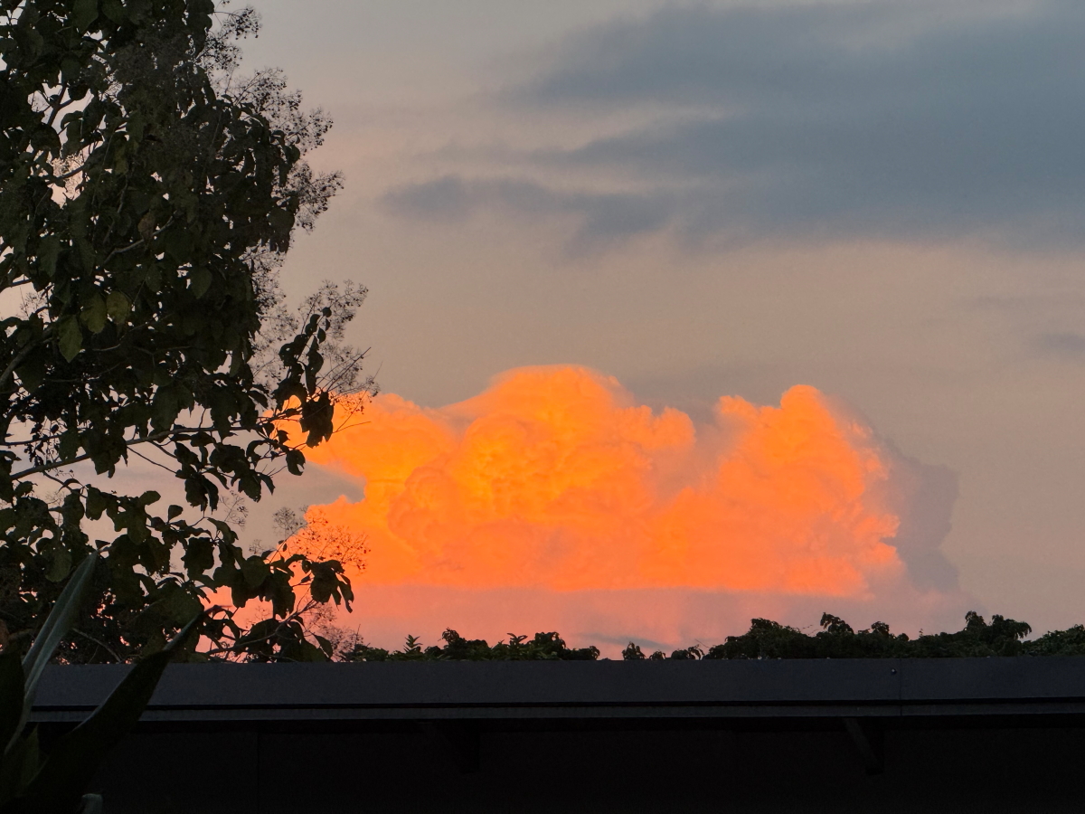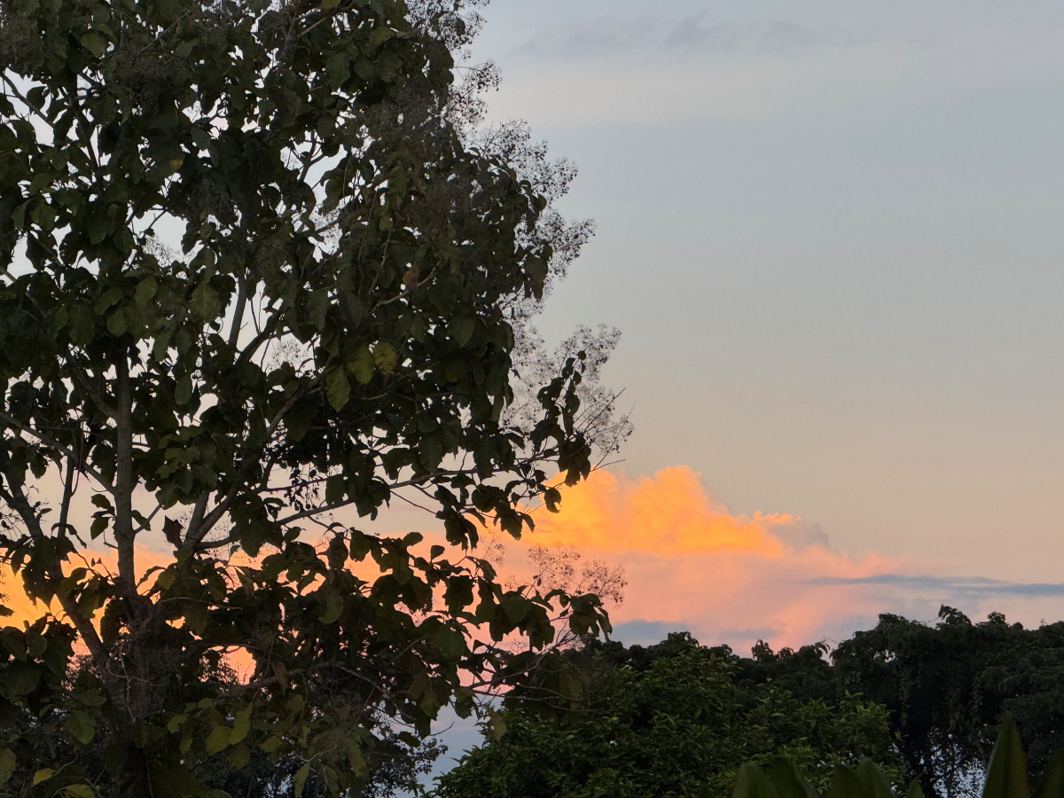 熱帯の陽射しで洗濯から、知り合いたちと食事して綺麗な夕焼け雲まででした