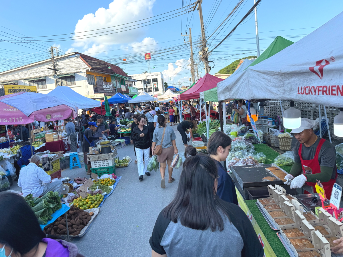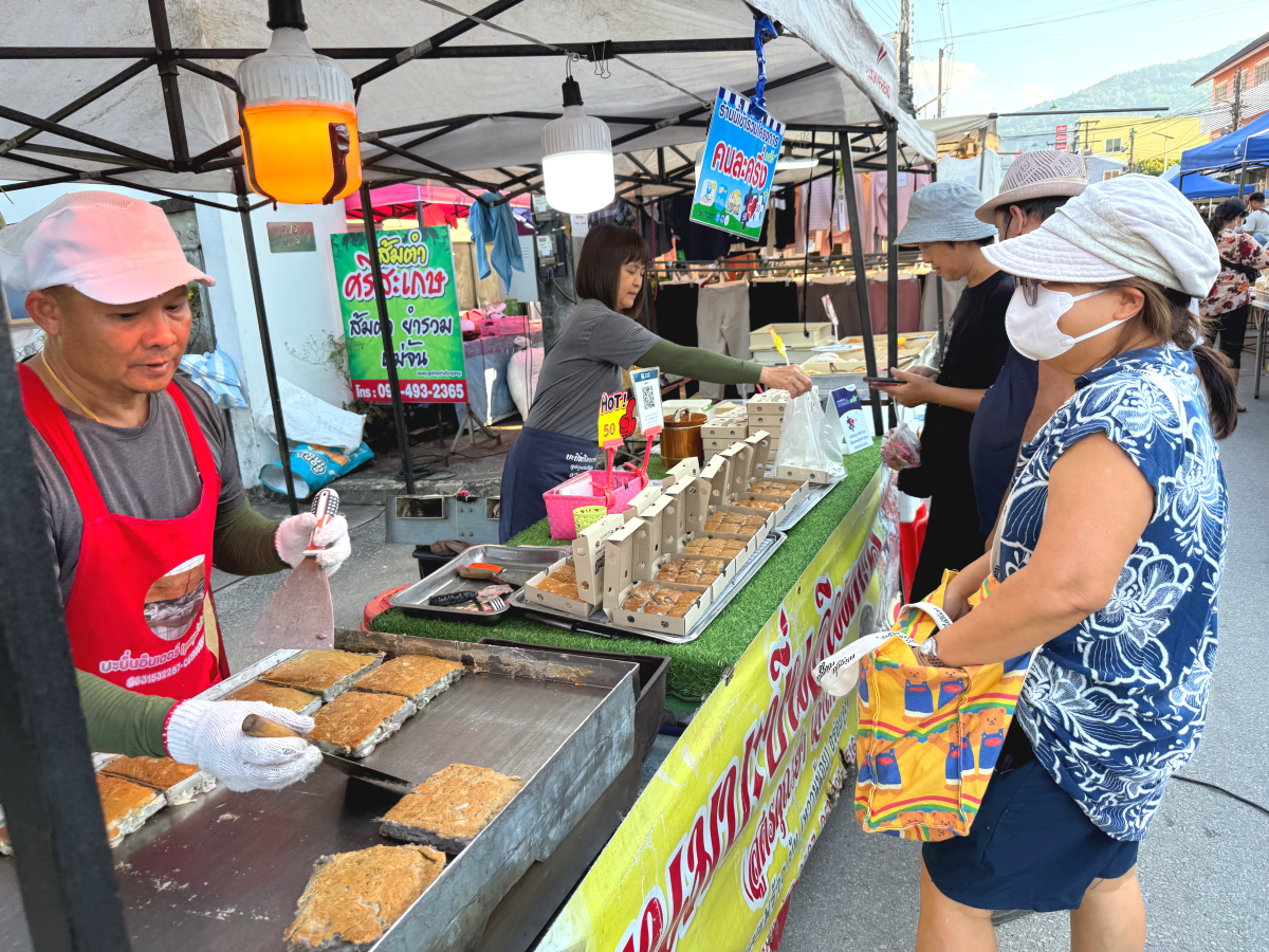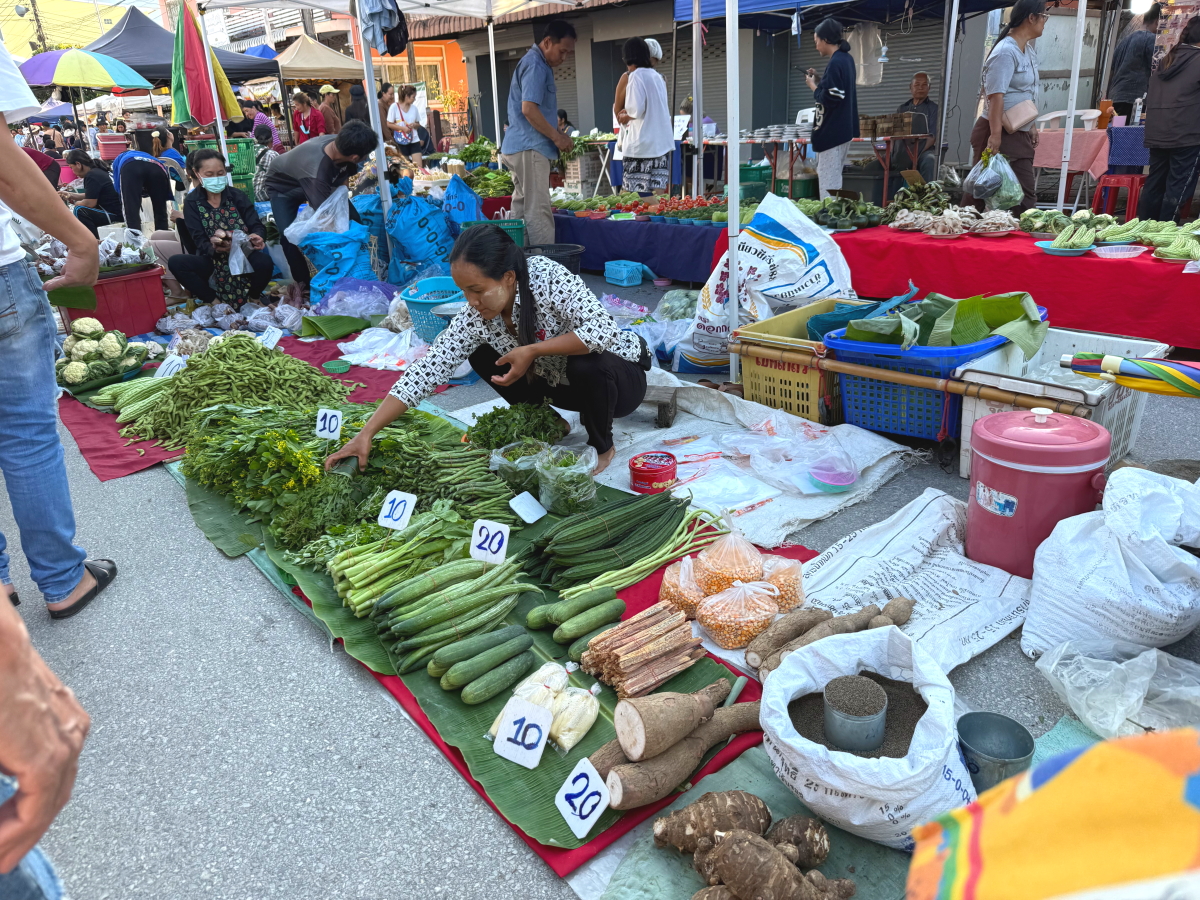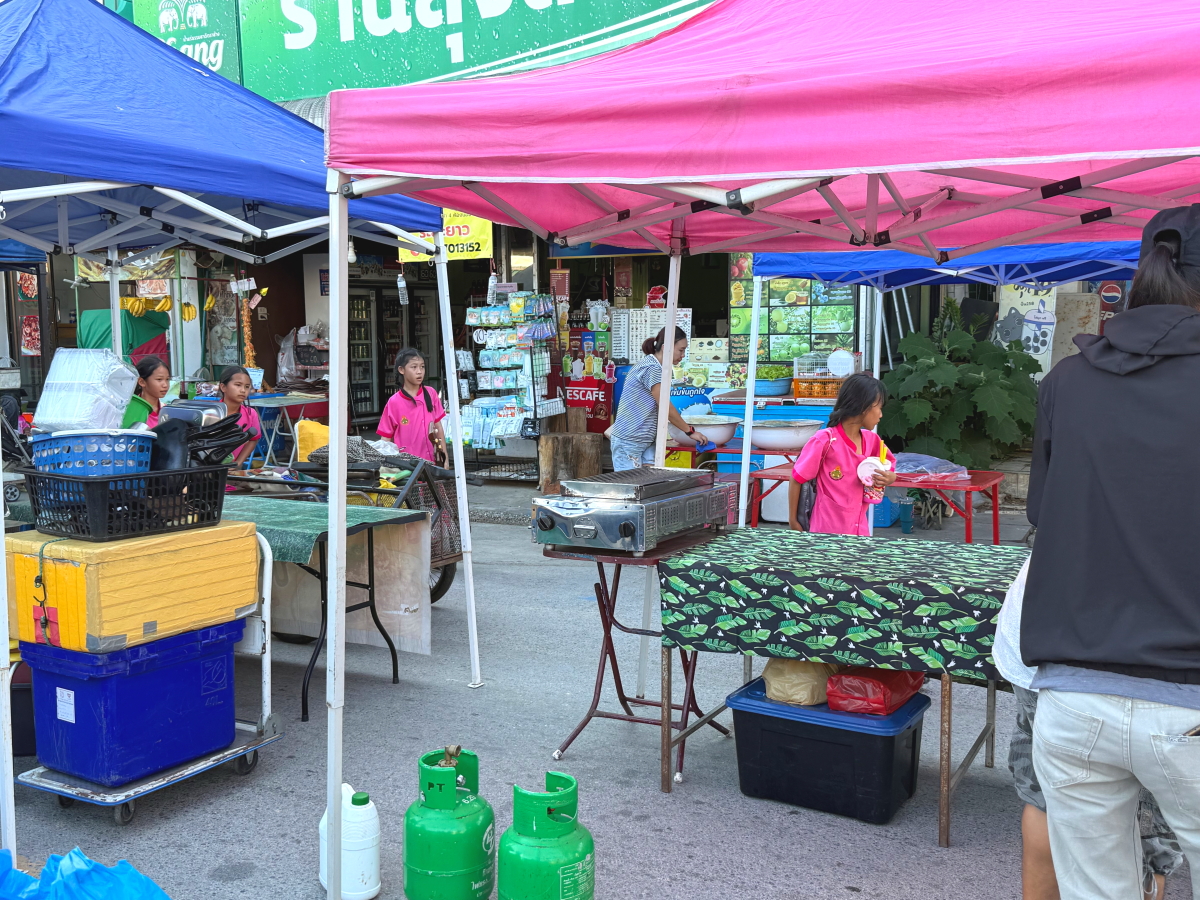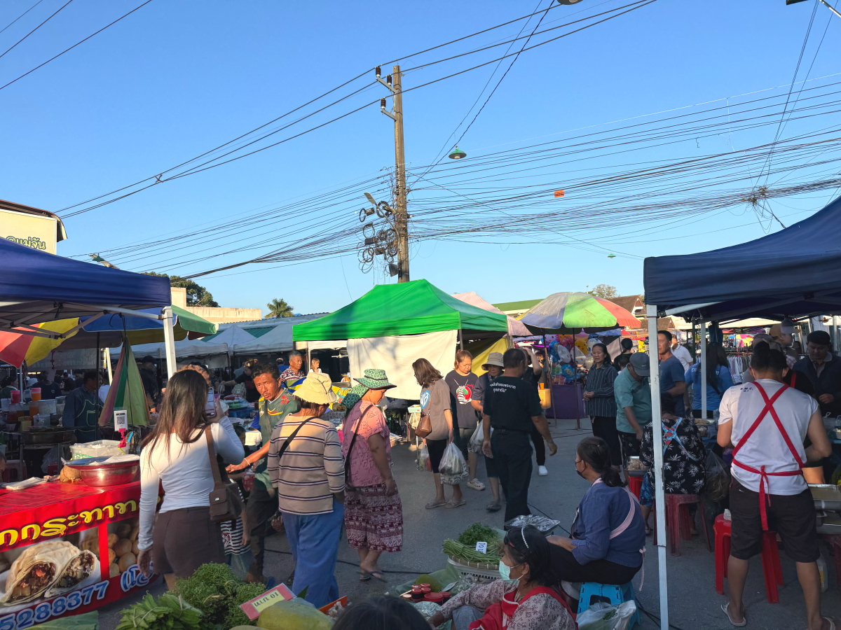 金曜開催のメーチャンの街の市場、警官達が道路封鎖の作業中