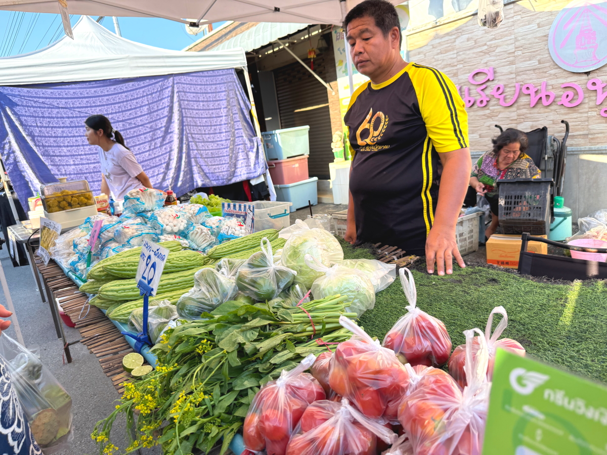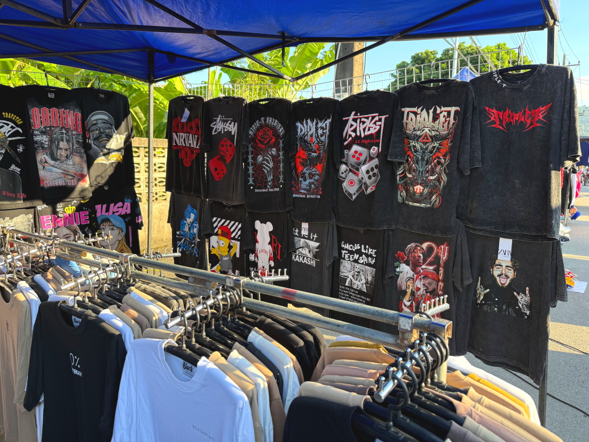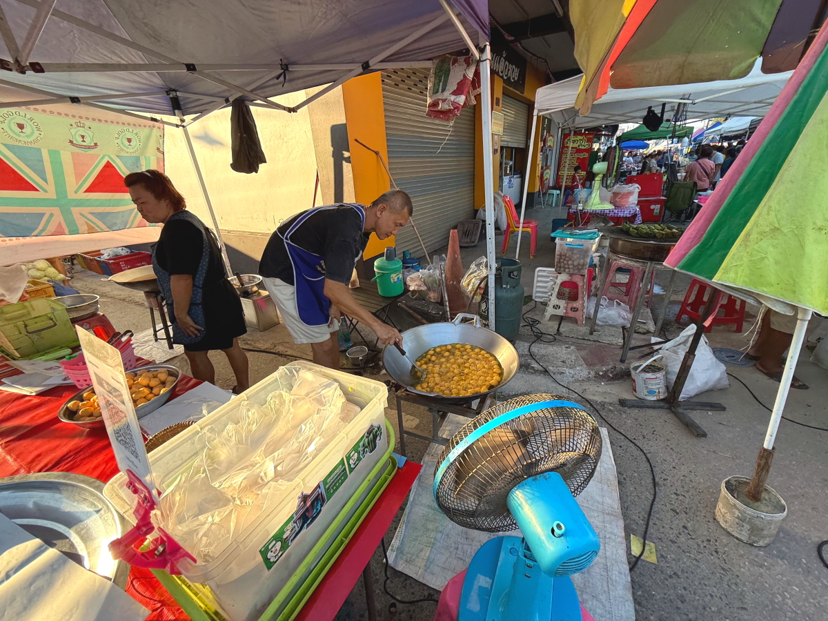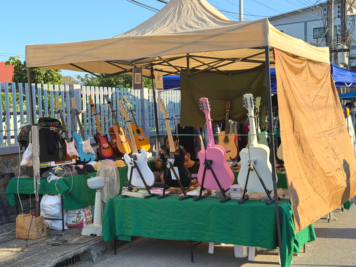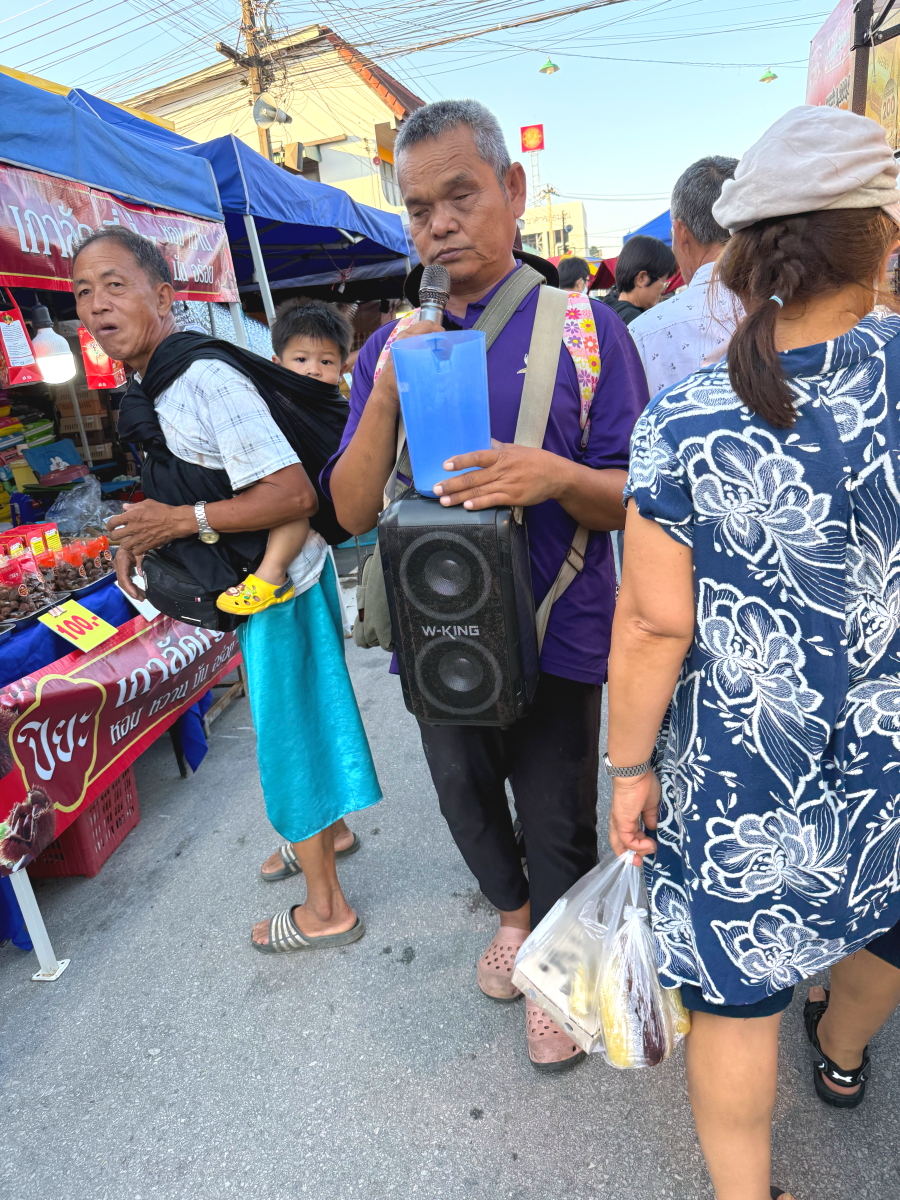 金曜開催のメーチャンの街の市場、警官達が道路封鎖の作業中