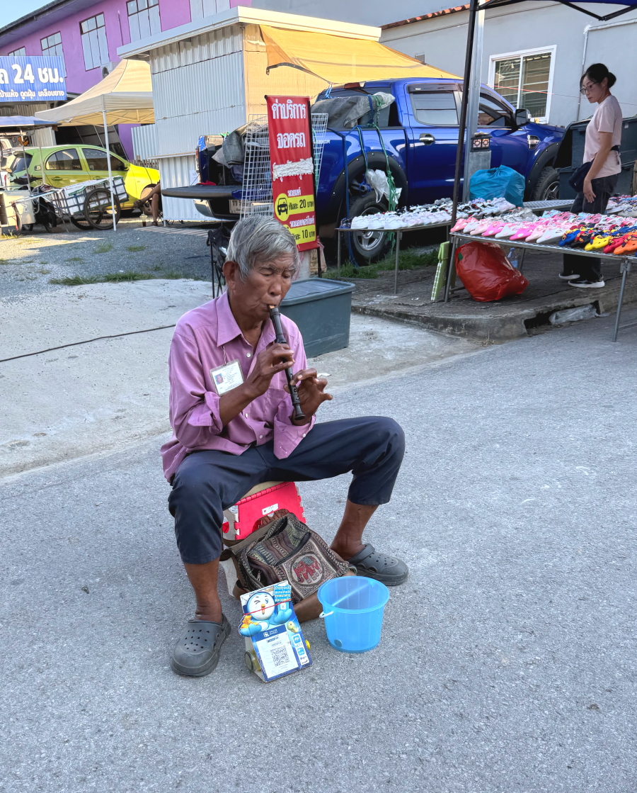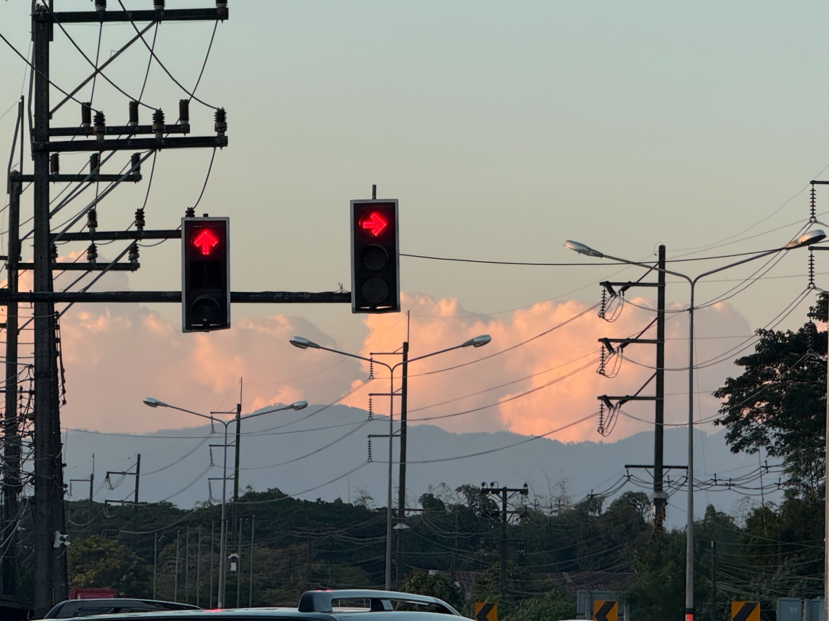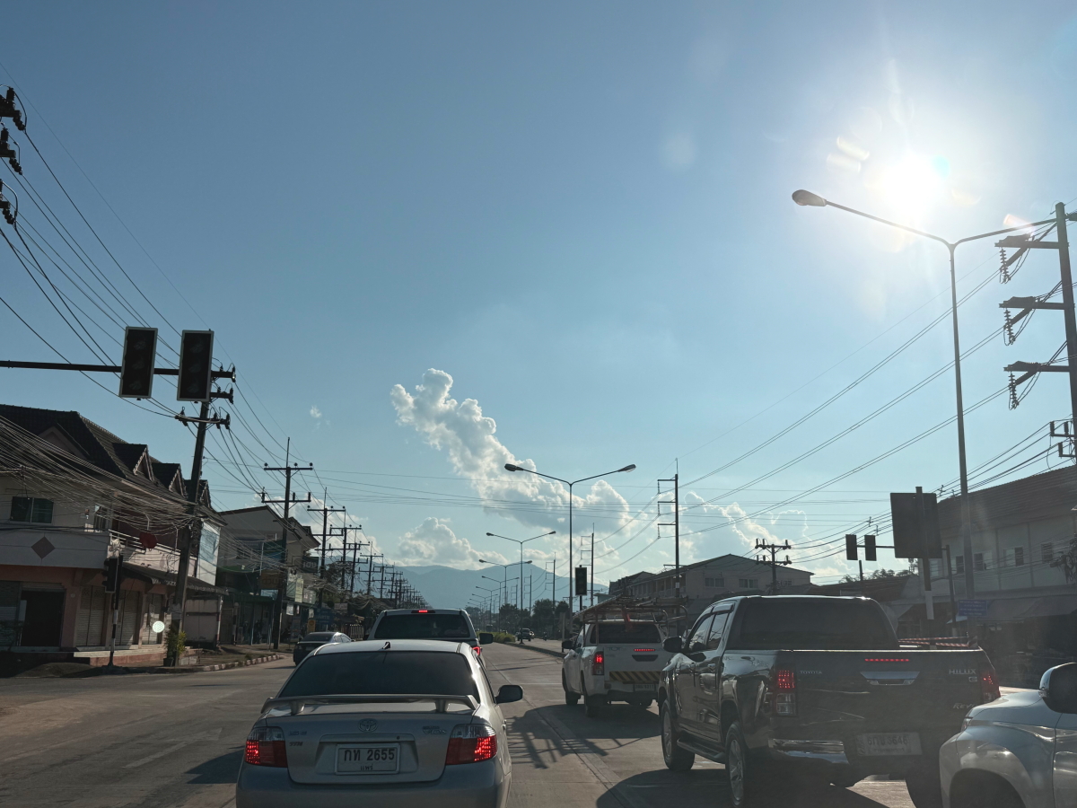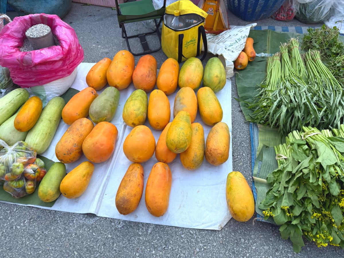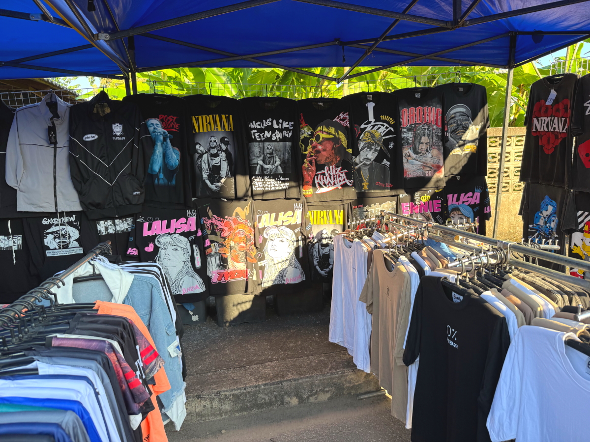 金曜開催のメーチャンの街の市場、警官達が道路封鎖の作業中