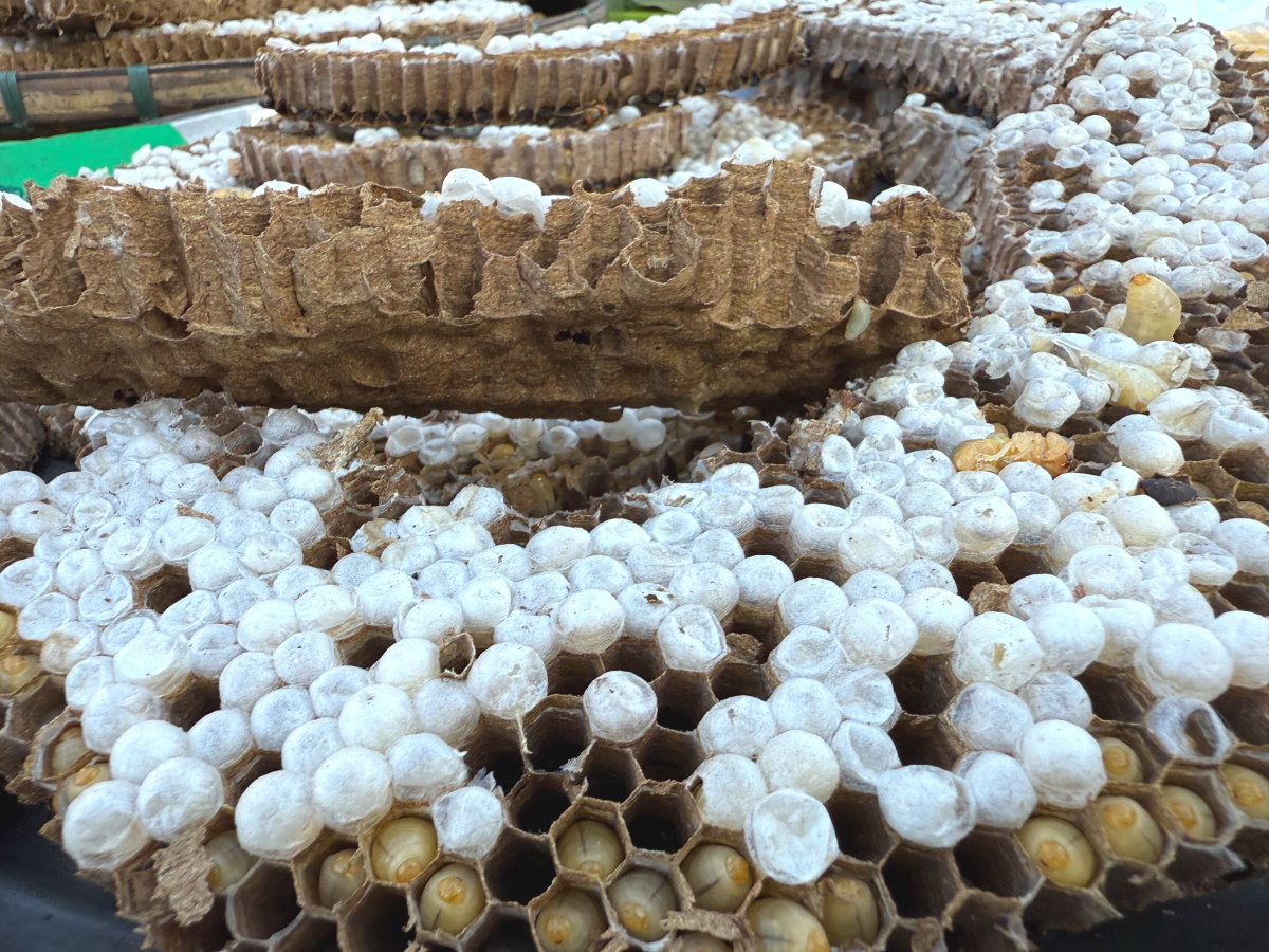 14,Nov,2025 朝から晴れて、庭のお花で蜂が蜜集め