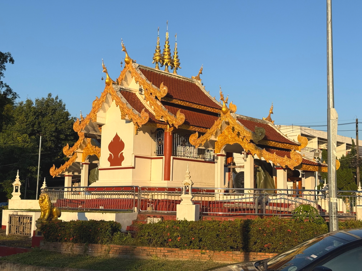 市場の北にあるロータリーの仏壇に西陽が当たりました