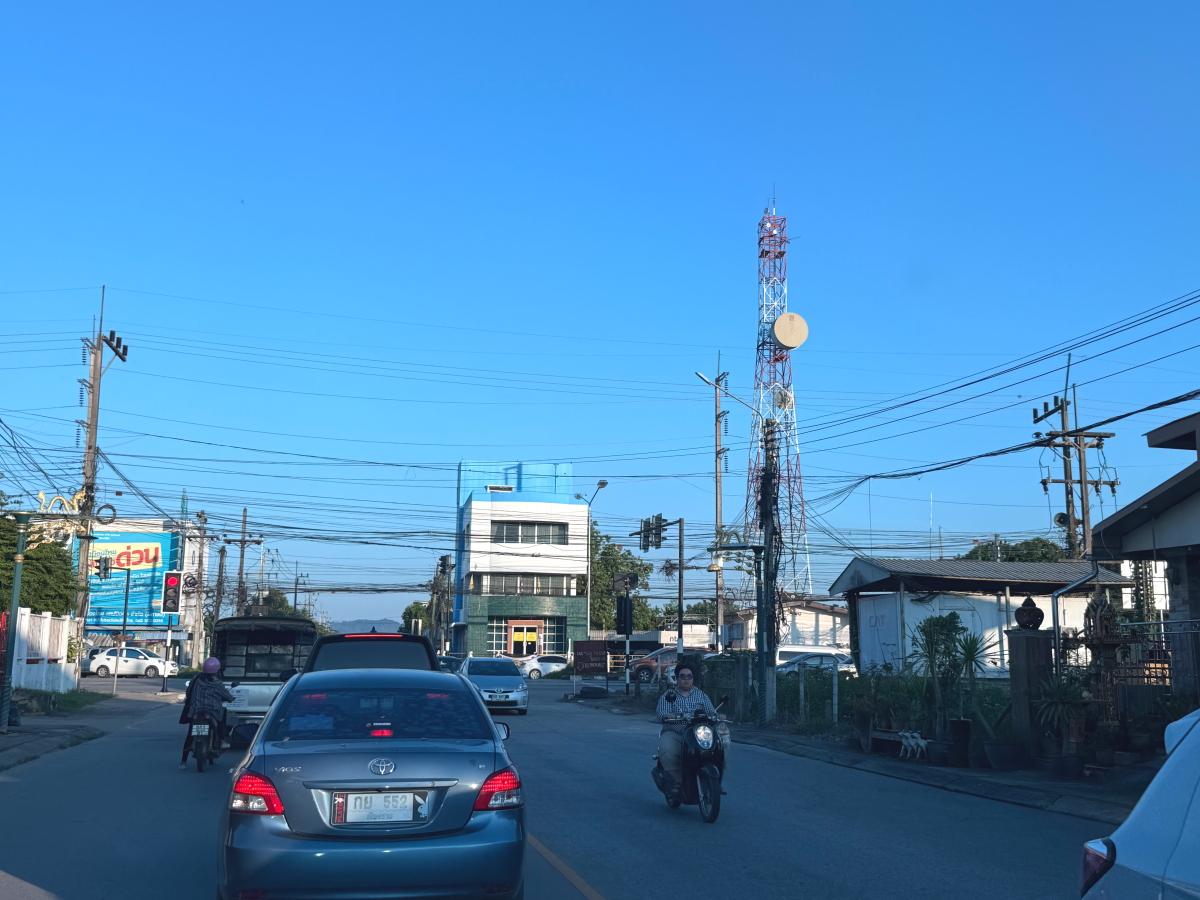 街の横を通る国道沿いの通信会社のアンテナが立派
