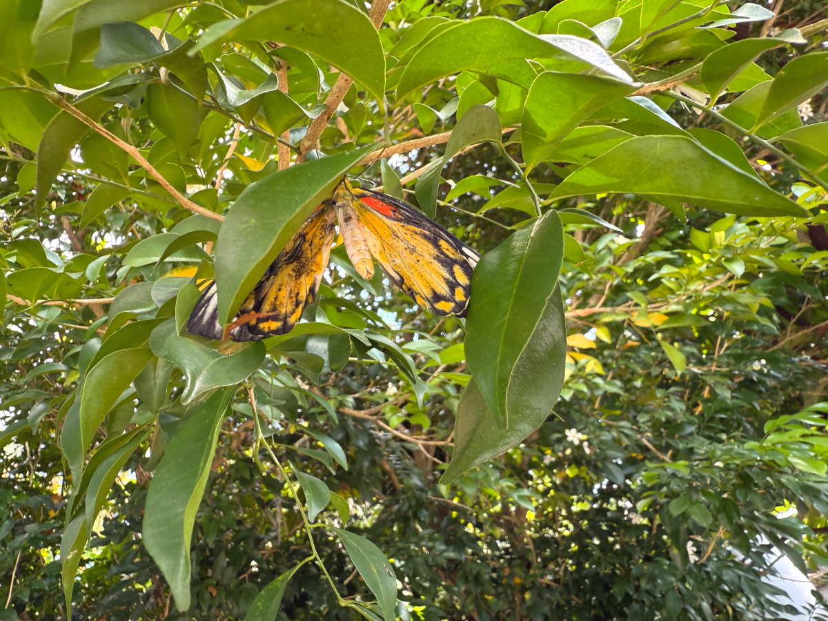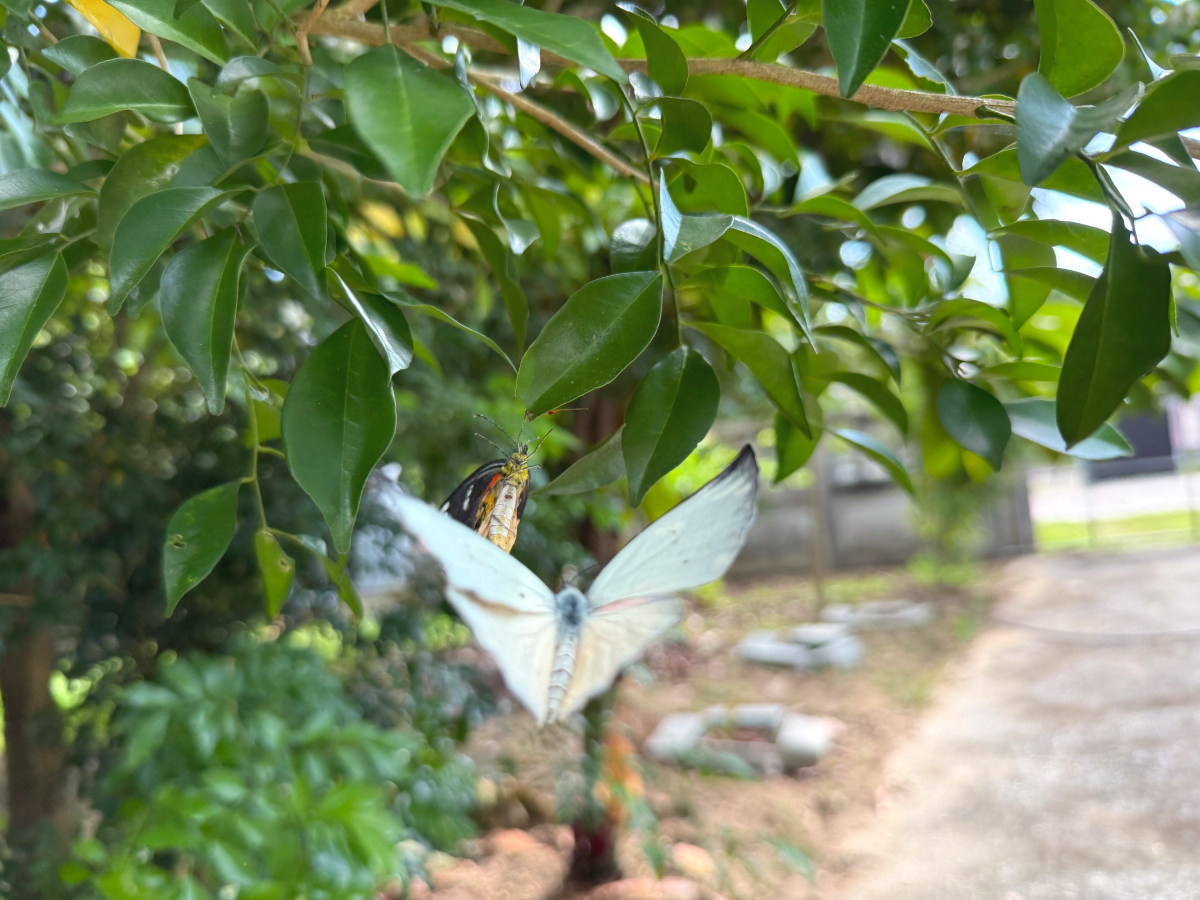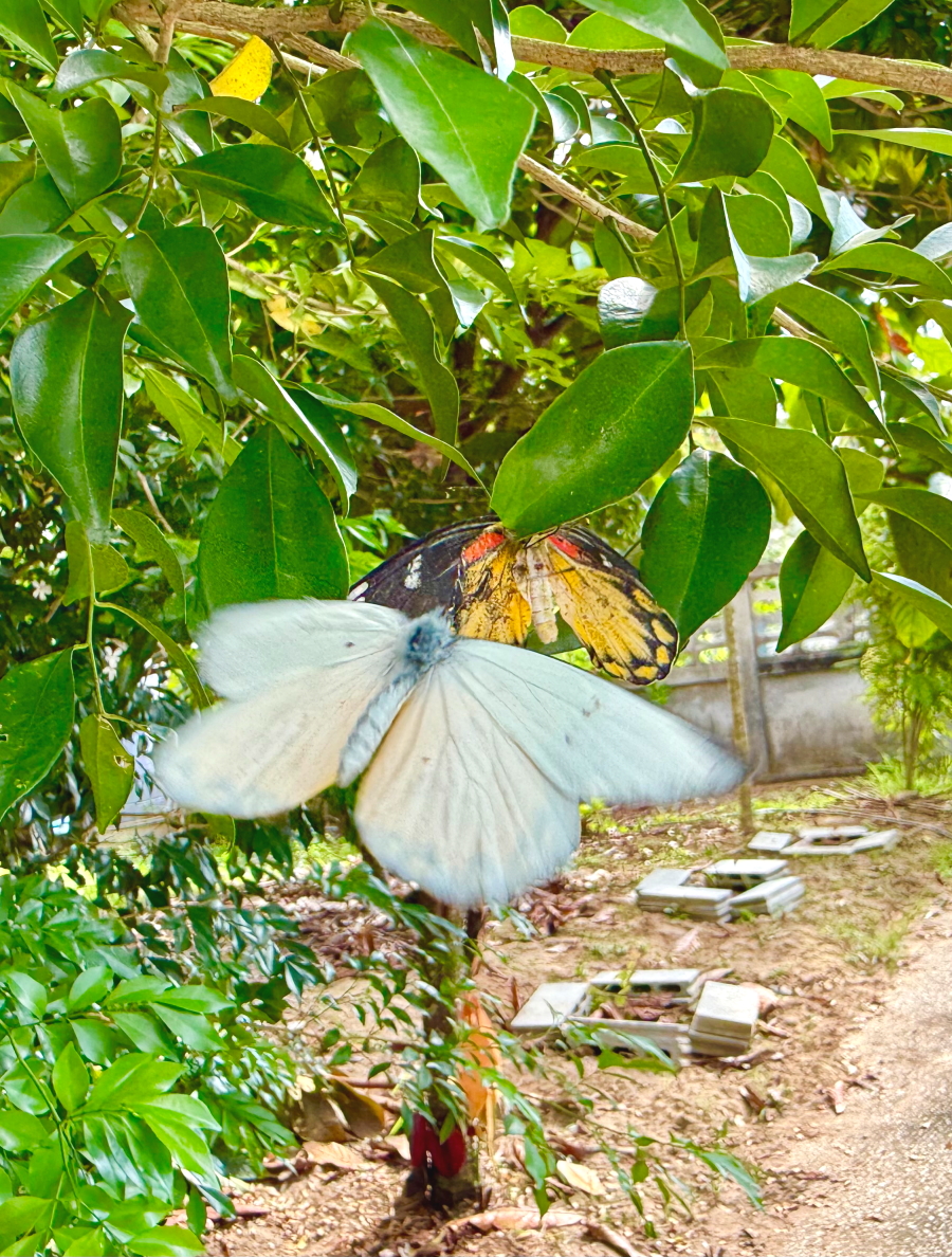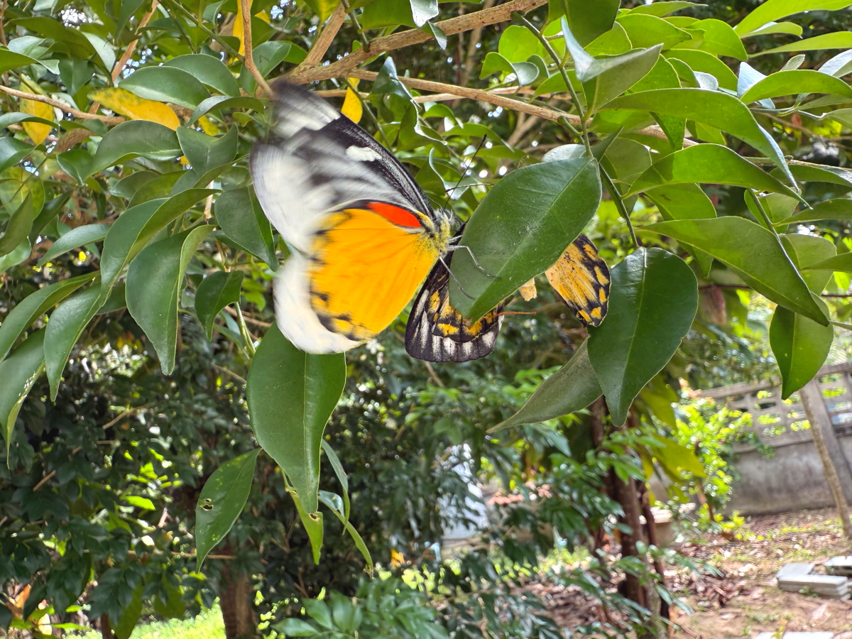 戻ると庭の木で蝶々が戯れてます