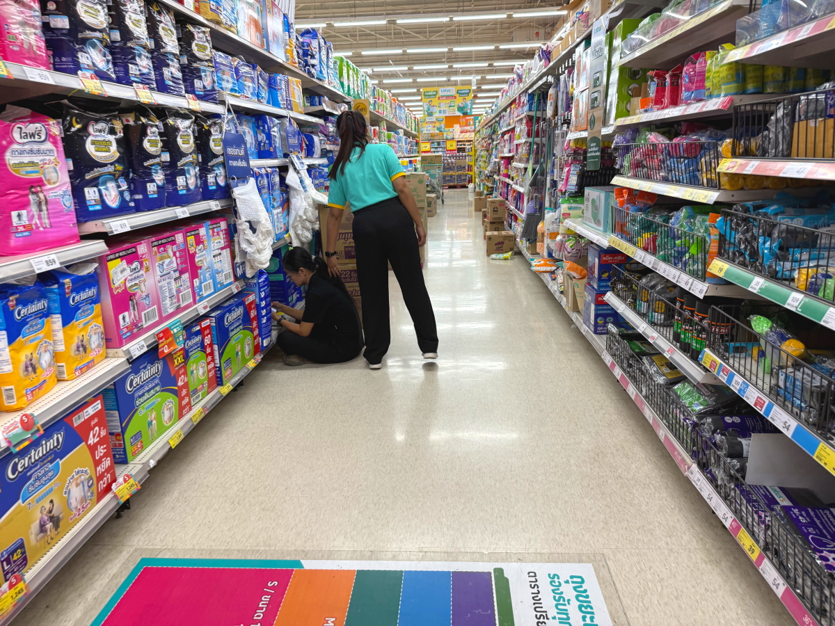 店員さん達は、どっかり座って商品整理
