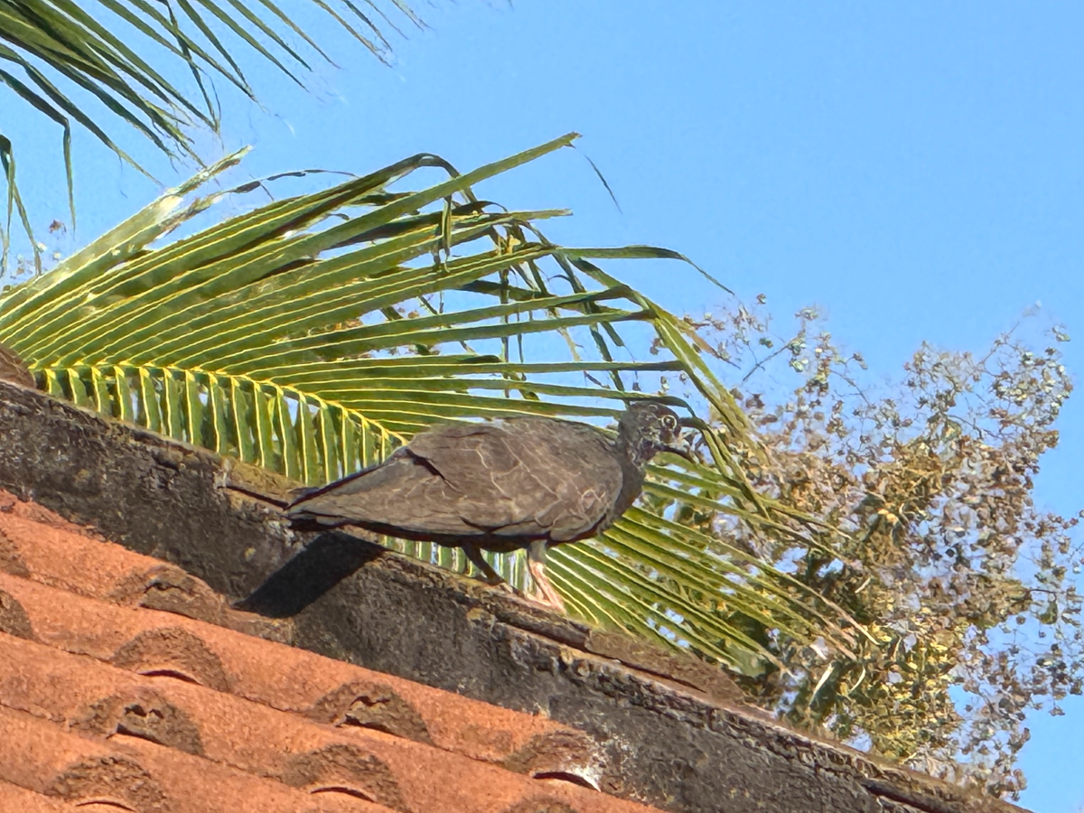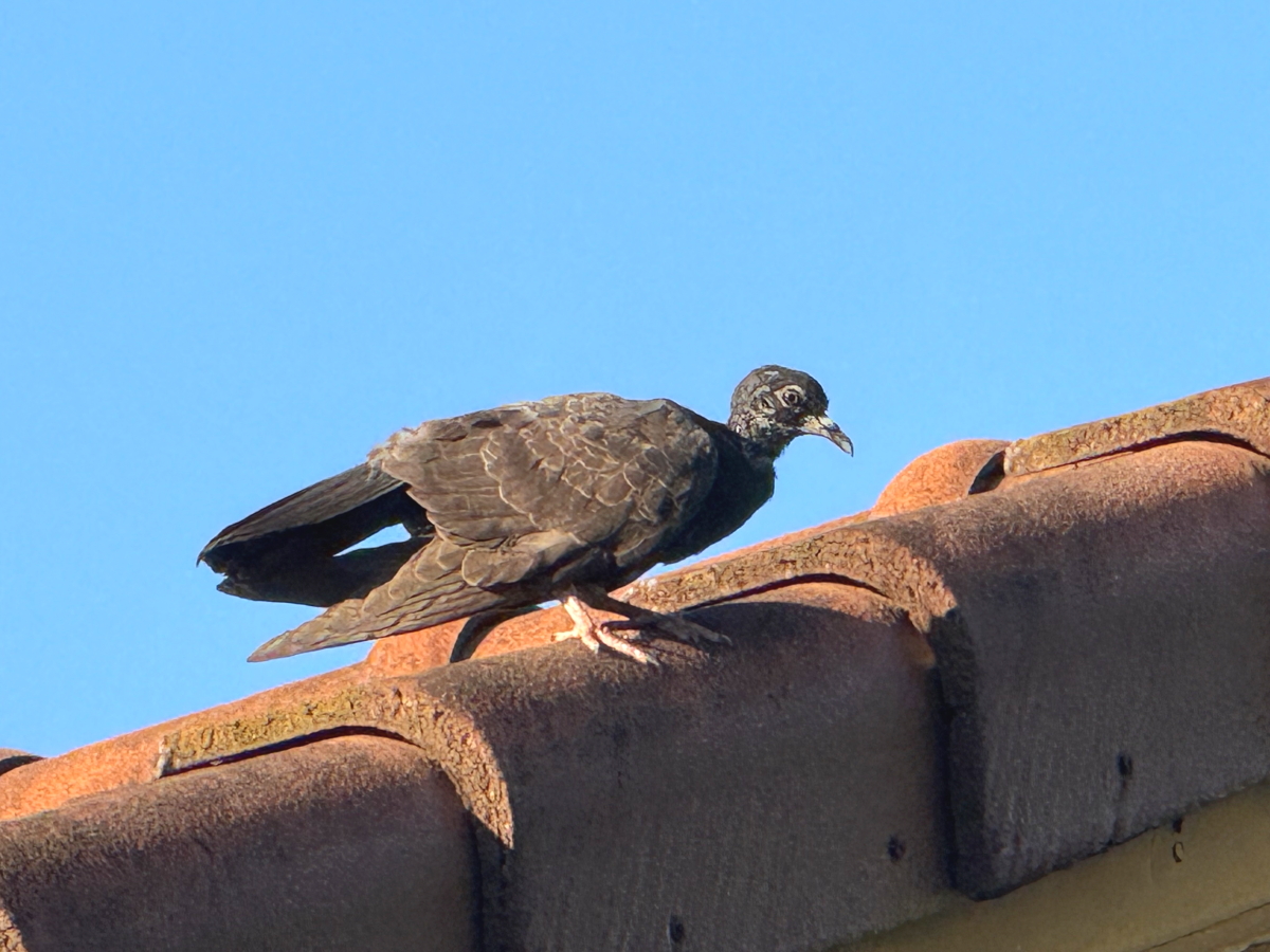 家に帰ると屋根の上から鳥が見つめてます