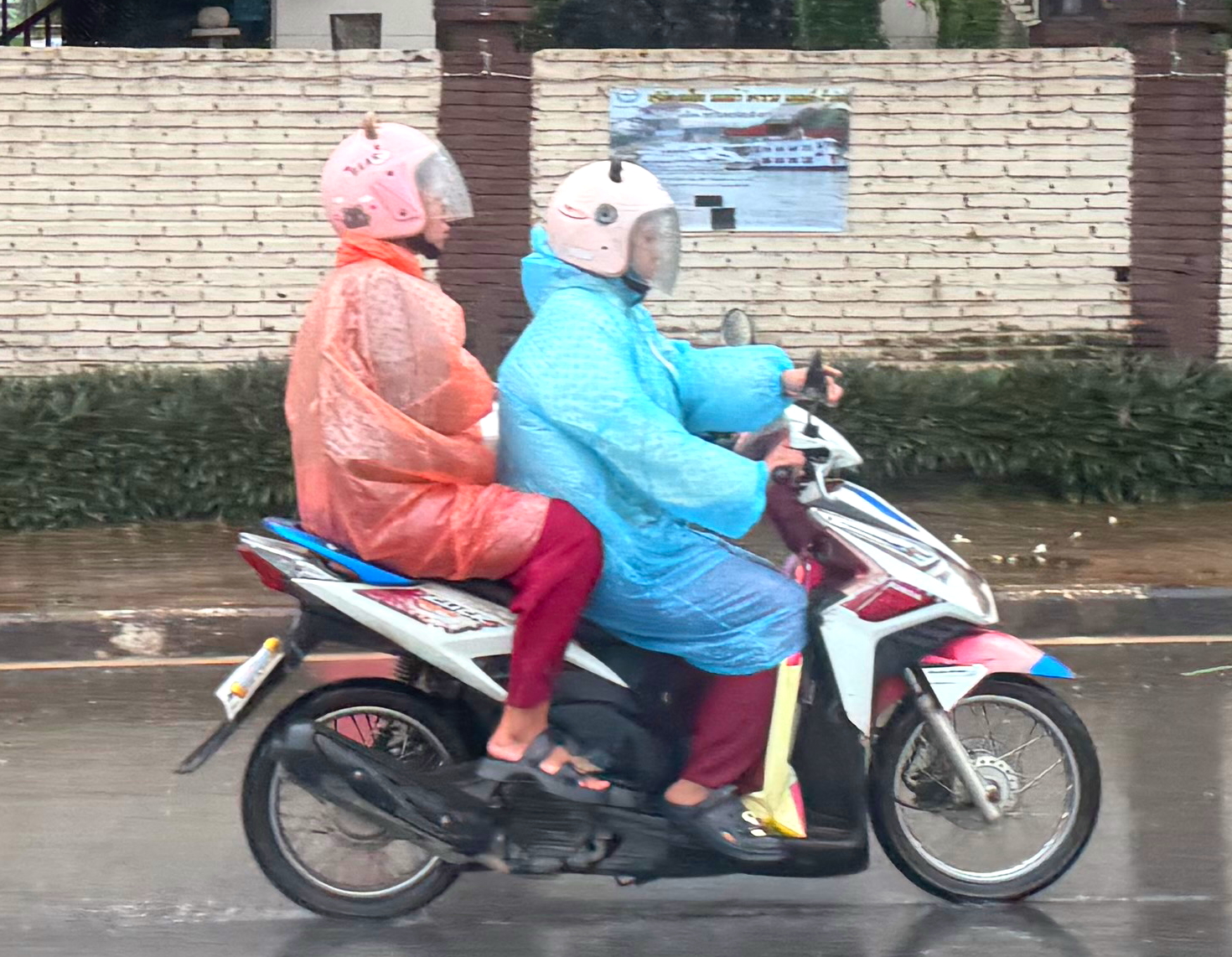 メーサイに近づくとカッパを着たバイクの方々が走ってます