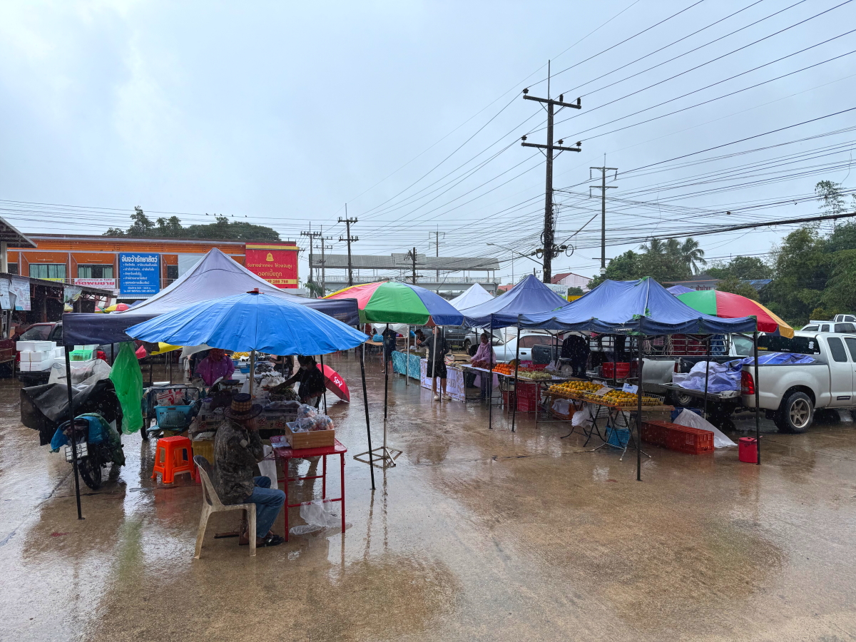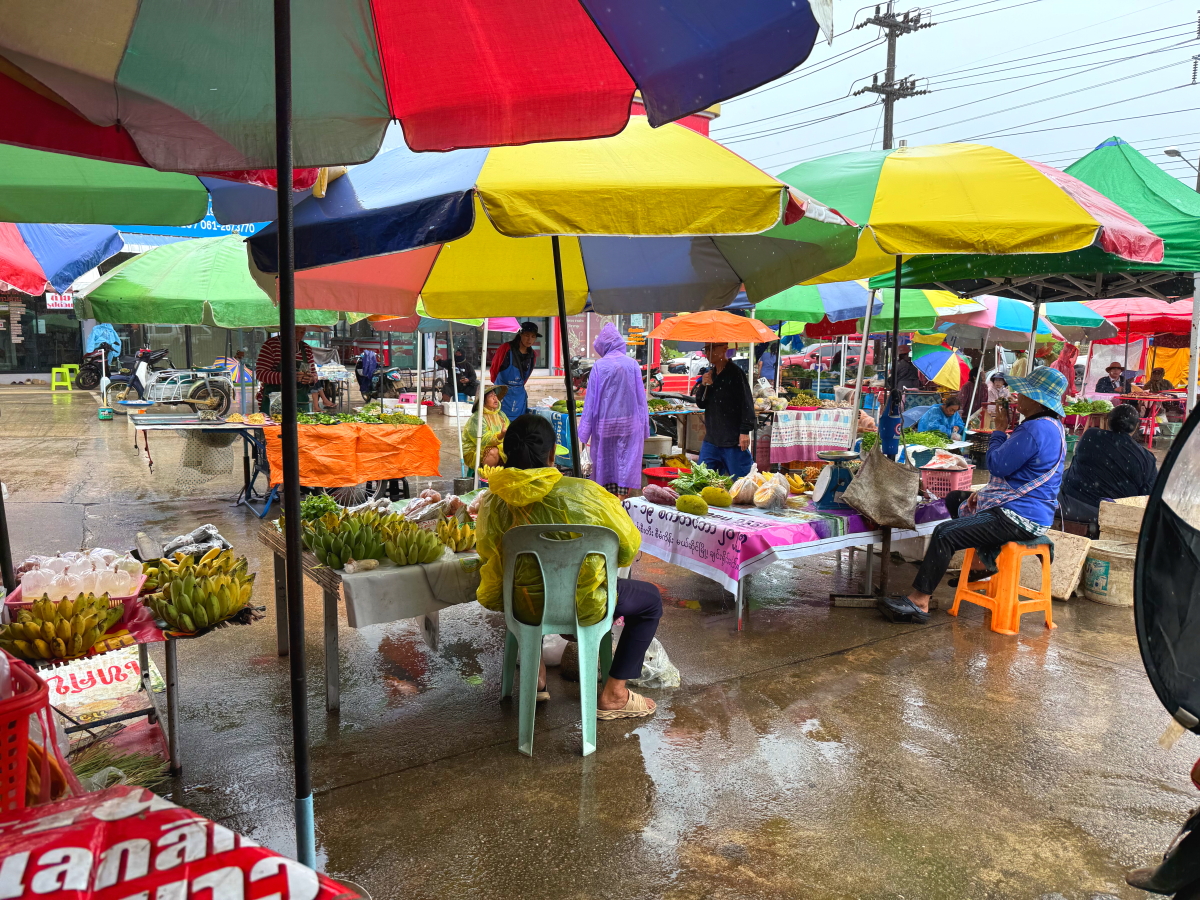 火曜日開催の市場に行きましたが、雨で人出は少なめ