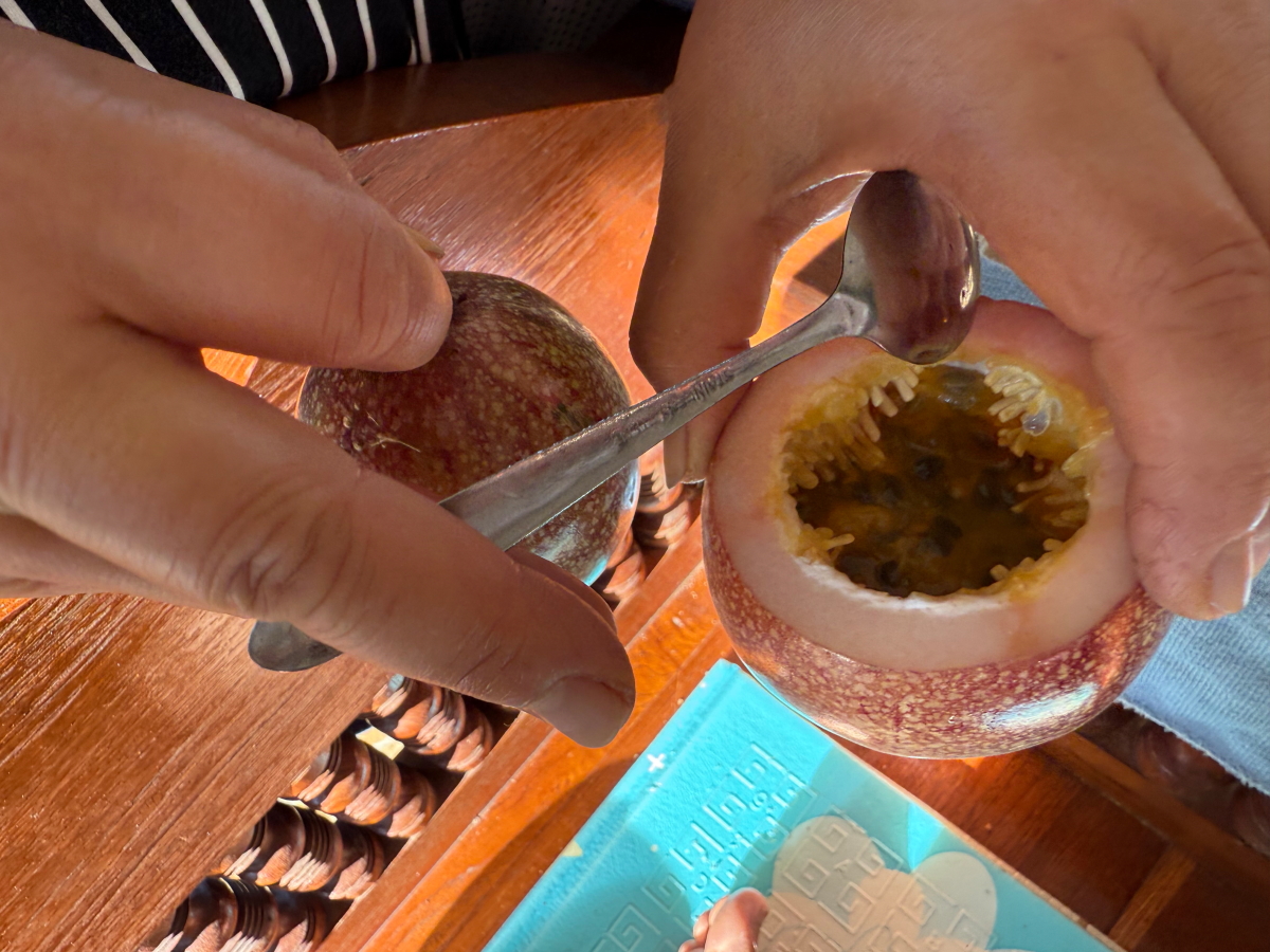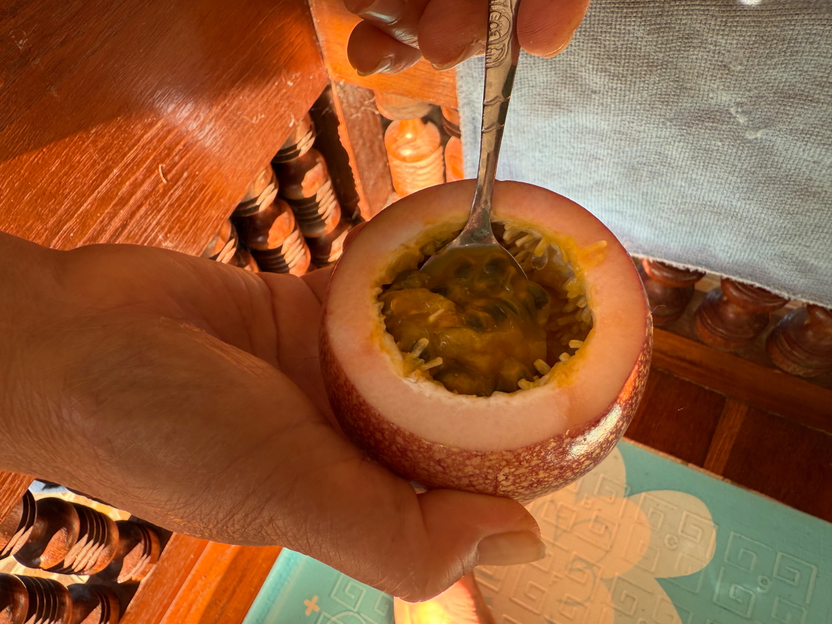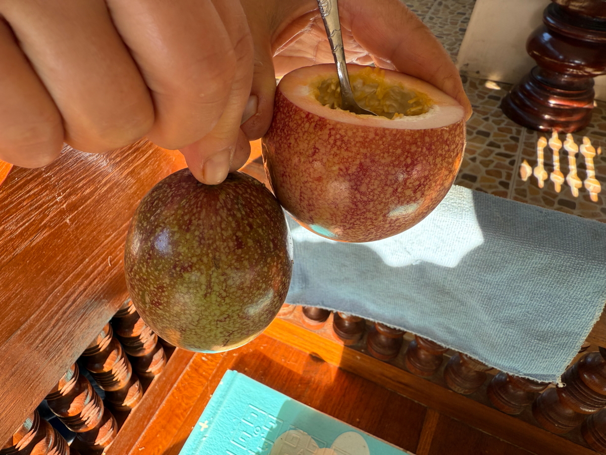 20,Nov,2025 庭でとれたパッションフルーツをいただきます