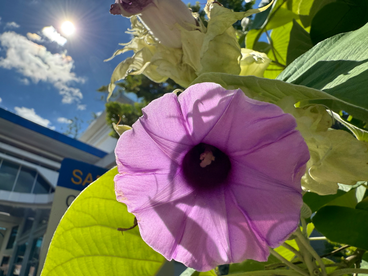ちょっと離れた私立の大病院に到着、入り口の朝顔が満開でした