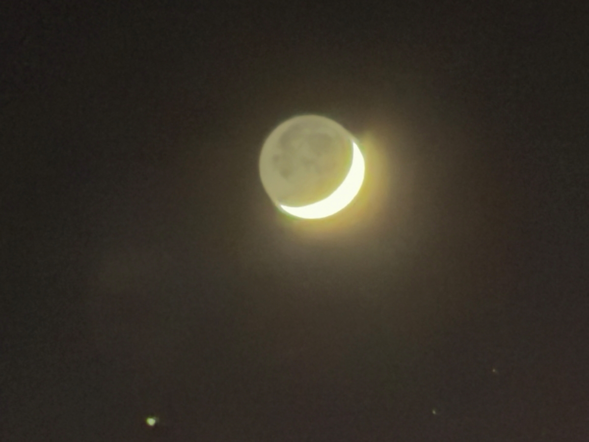 月に地球からの光が照り返す、「地球照」で月の模様が写りました